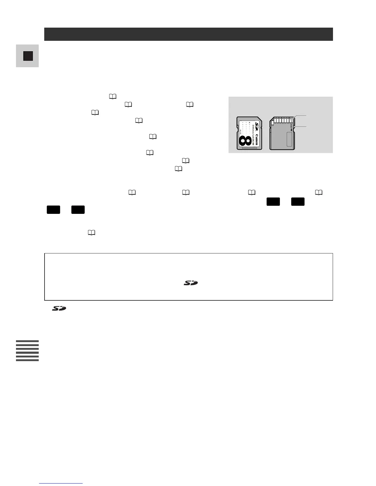 The camcorder can record, store and manage still images on 2 types of memory cards: the SD