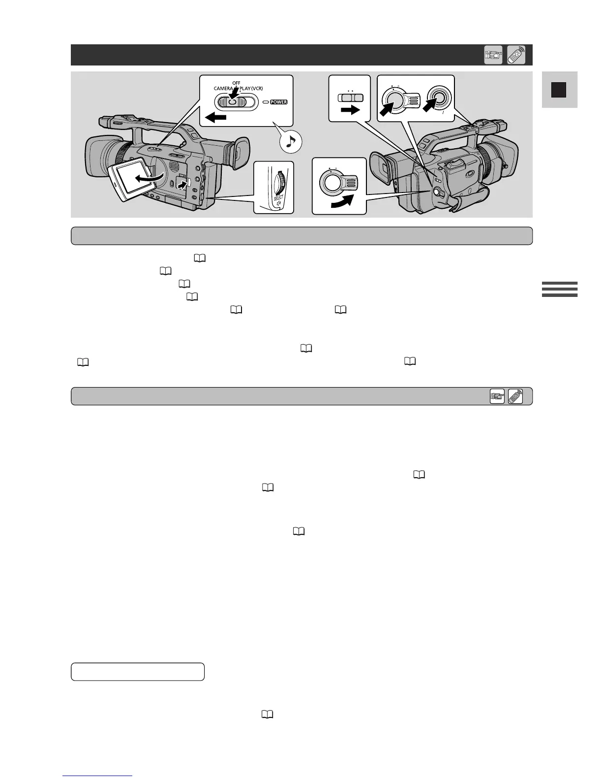 •For recording still images, see “Recording Still Images onto a Tape” ( 46) and “Recording