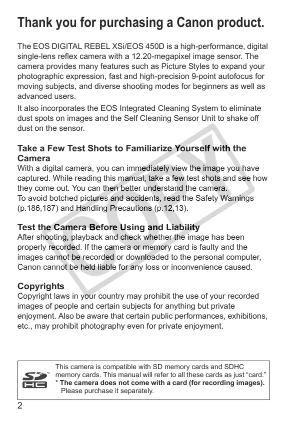 The EOS DIGITAL REBEL XSi/EOS 450D is a high-performance, digital
