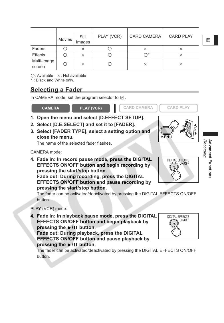 The fader can be activated/deactivated by pressing the DIGITAL EFFECTS ON/OFF