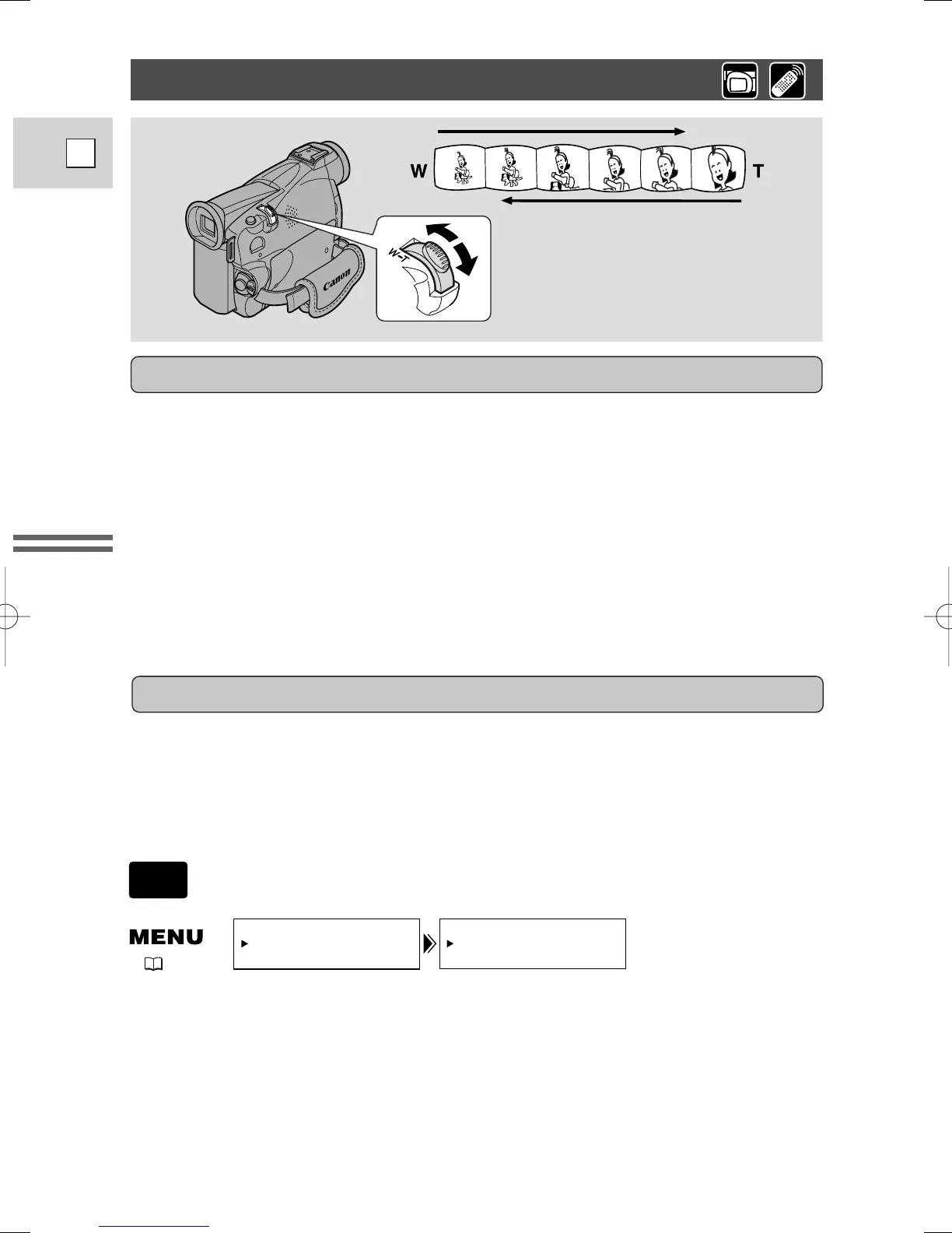Magnifies the camcorder’s zoom range by up to 20× in CAMERA mode.