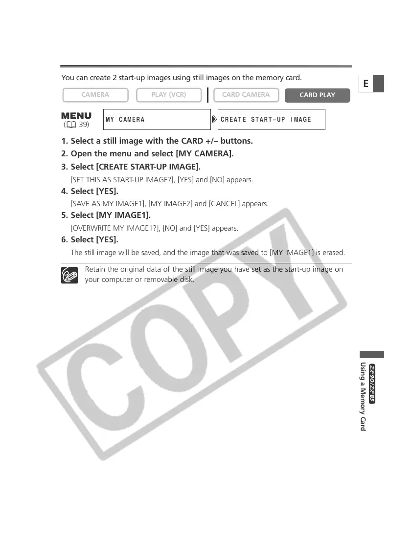 The still image will be saved, and the image that was saved to [MY IMAGE1] is erased.