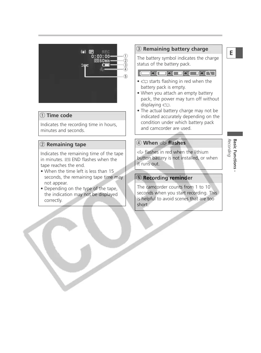 Indicates the remaining time of the tape