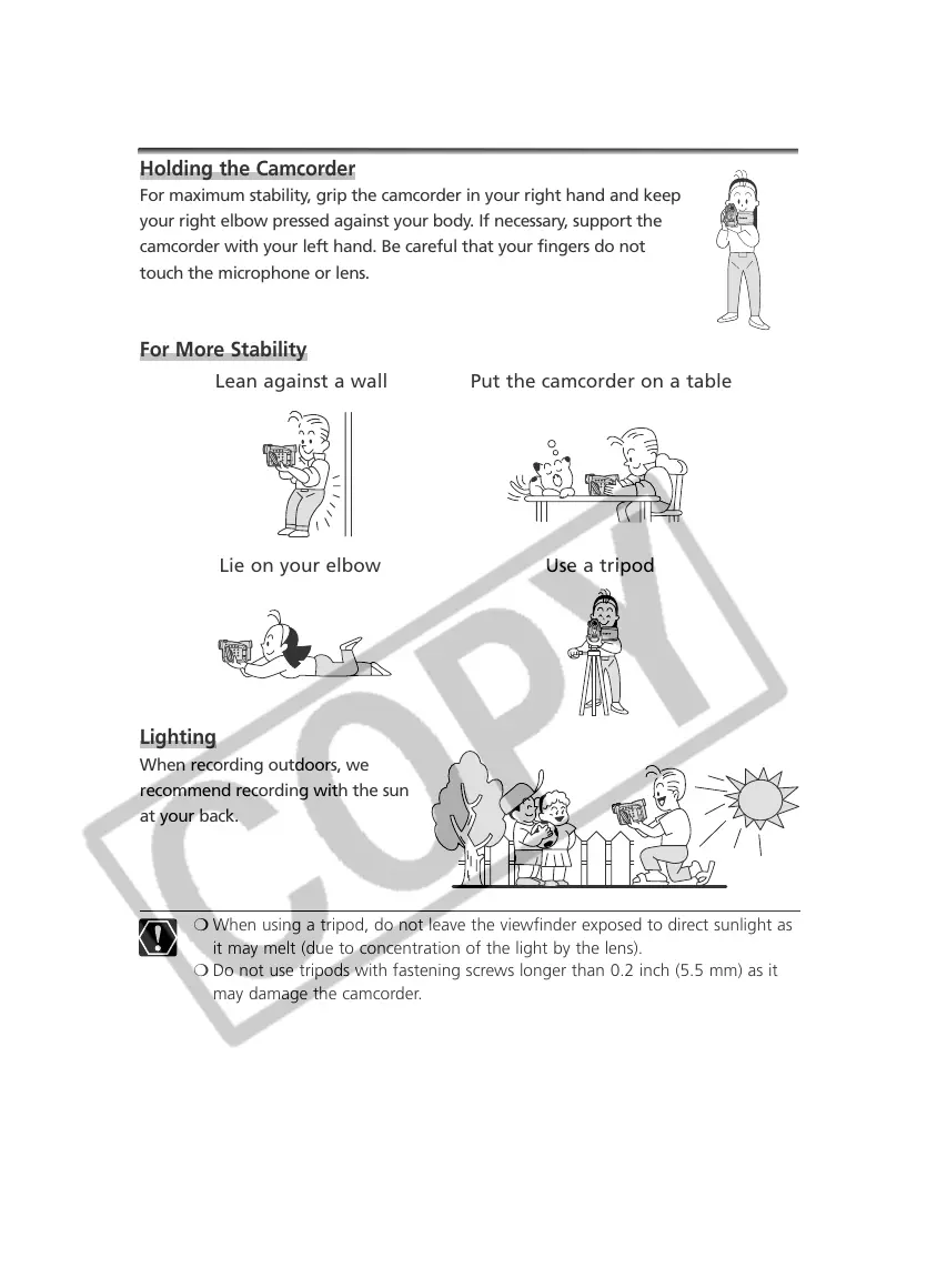 ❍ Do not use tripods with fastening screws longer than 0.2 inch (5.5 mm) as it