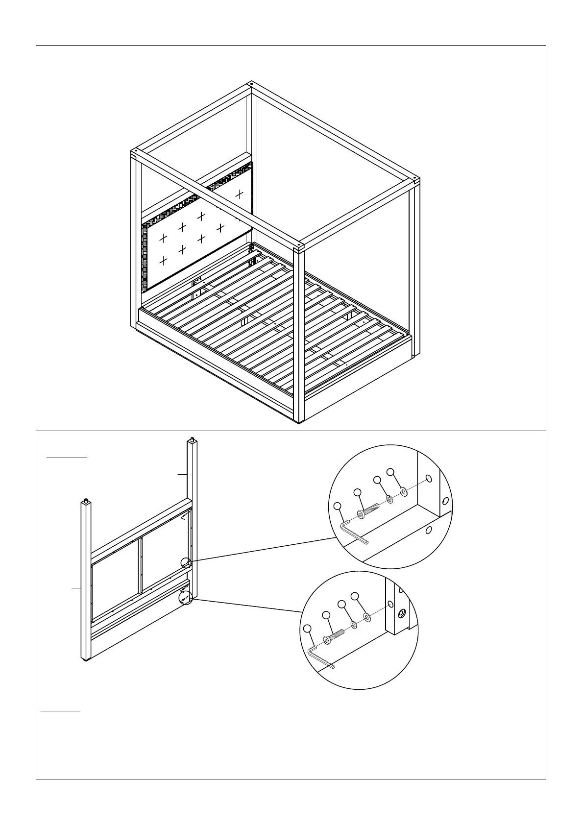 HEADBOARD POST (G2) WITH FOUR M8X40 ALLEN BOLTS (2), SPRING WASHERS (4) AND FLAT