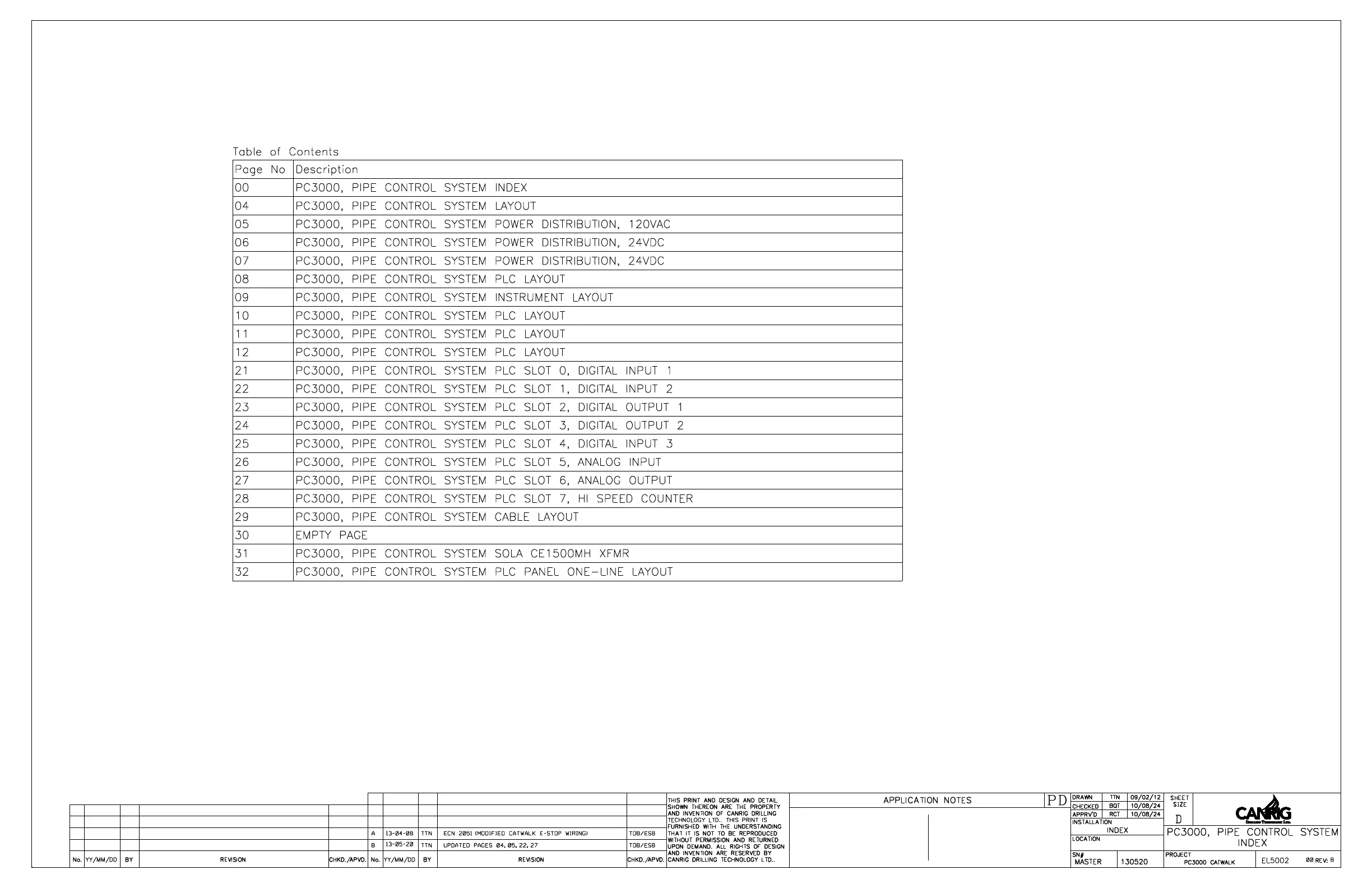 PC3000, PIPE CONTROL SYSTEM INDEX