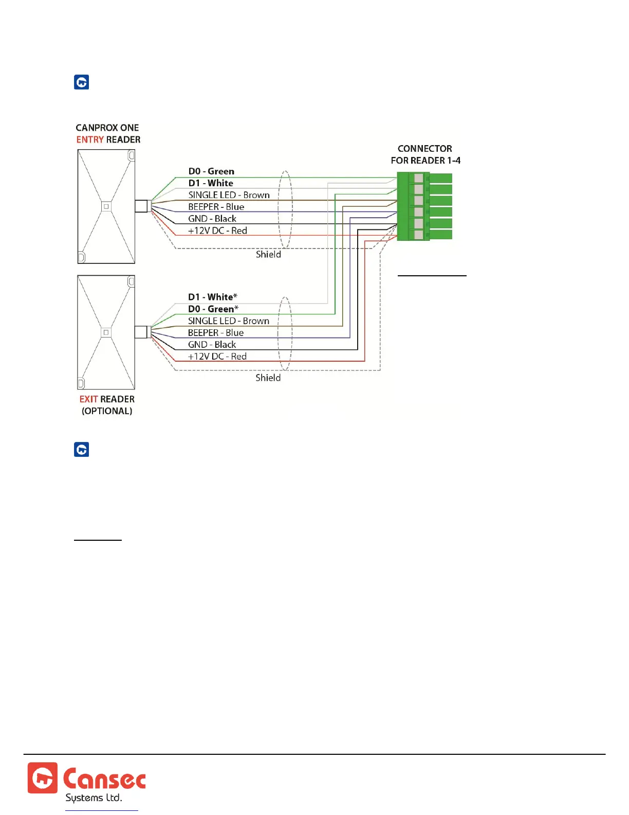 Reader 2: uses Input 3 (Door Contact/DPS) and Input 4 (RTE/REX).
