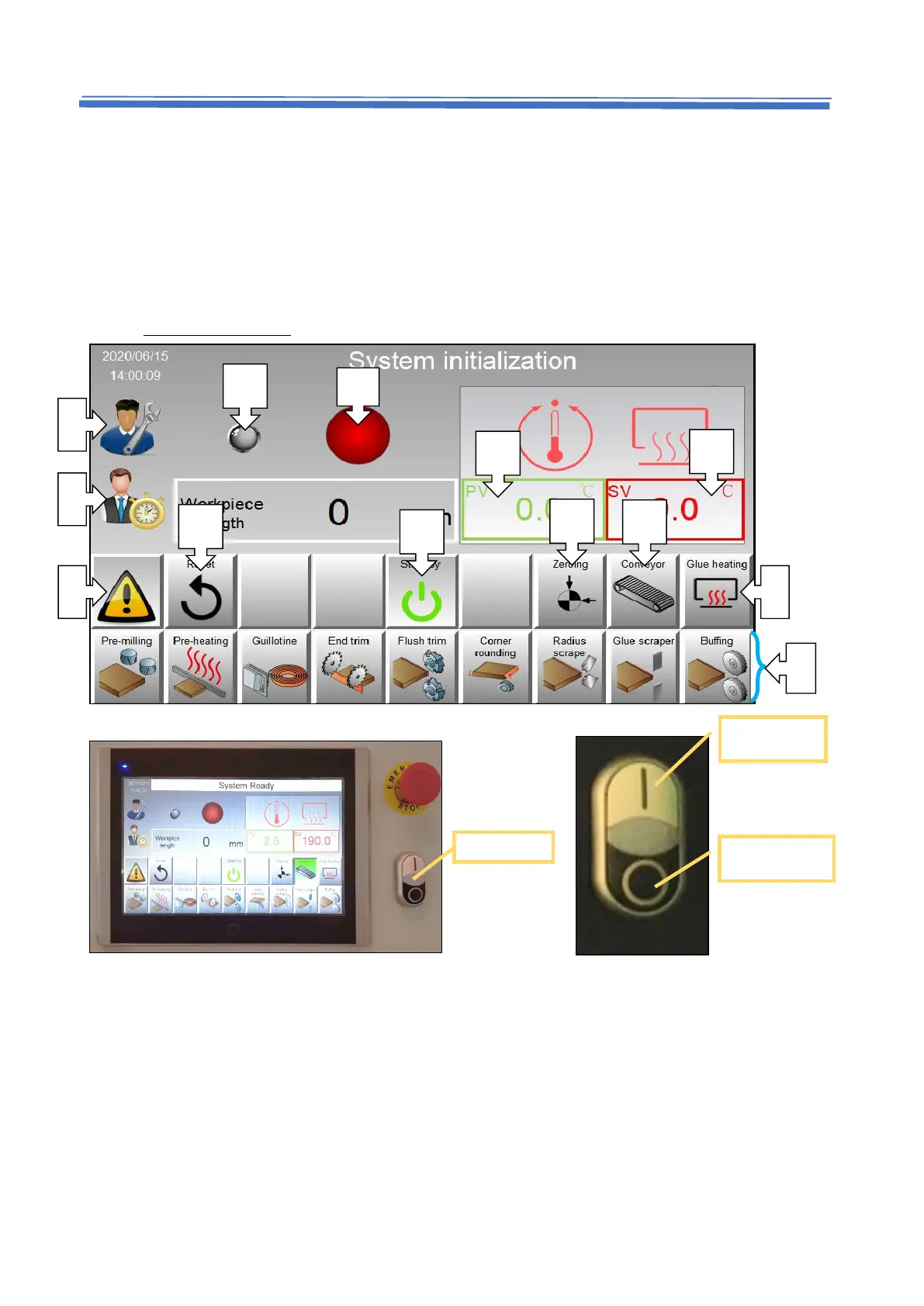 Click button to enable functions, press ON button to start machine.