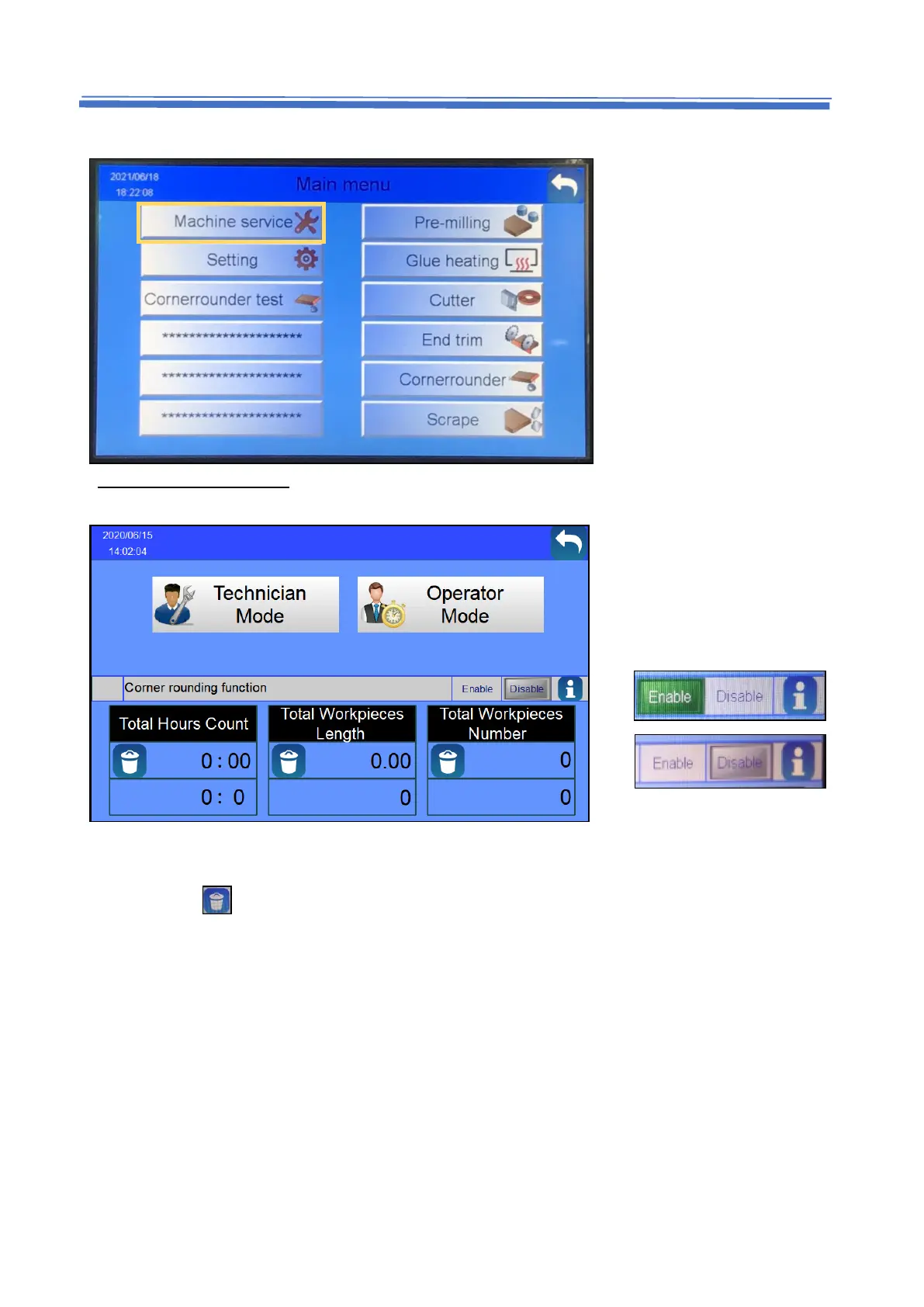 a. Machine service – Operator and technician mode.