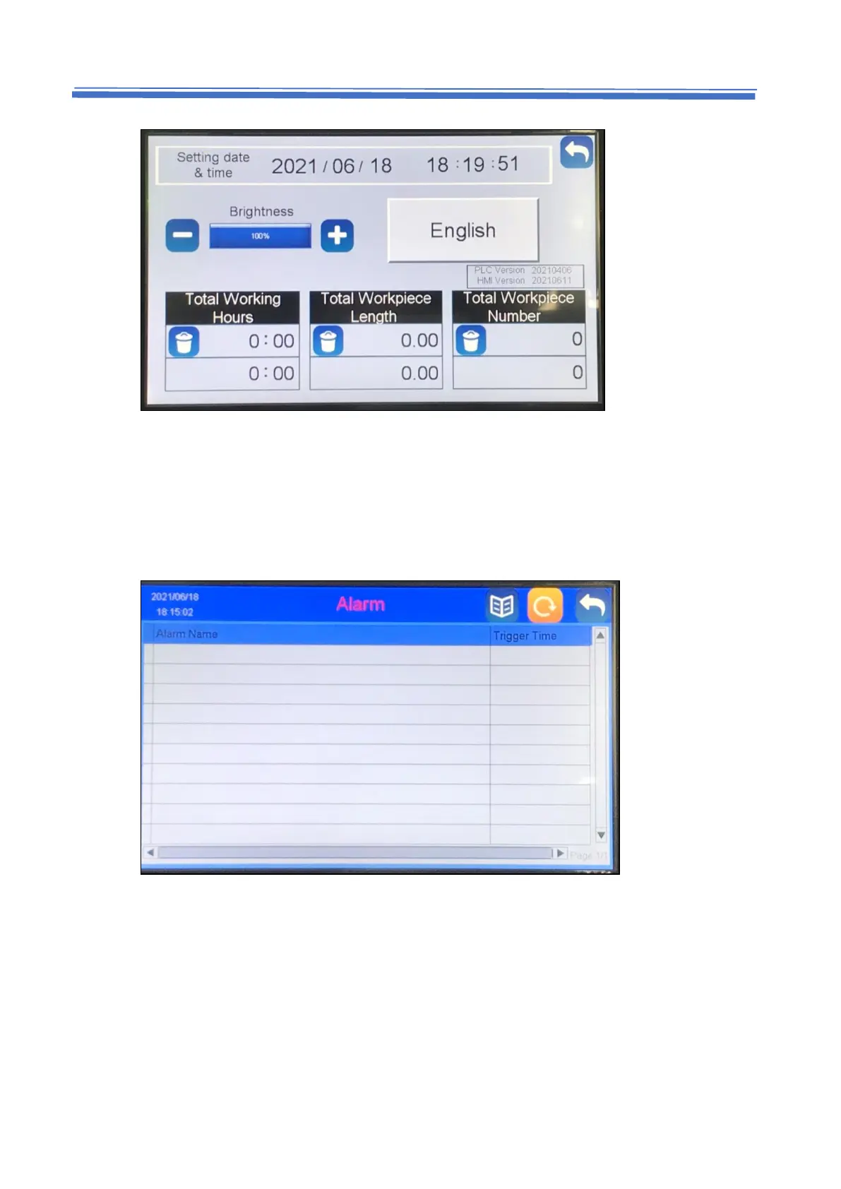 Press to reset alarm, you can check to obtain alarm history.