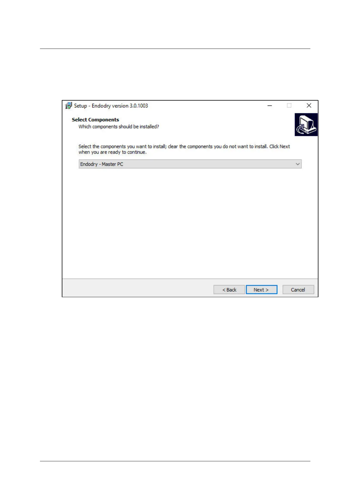 5. Select software components (cabinet versions) which need to be installed and press the Next >