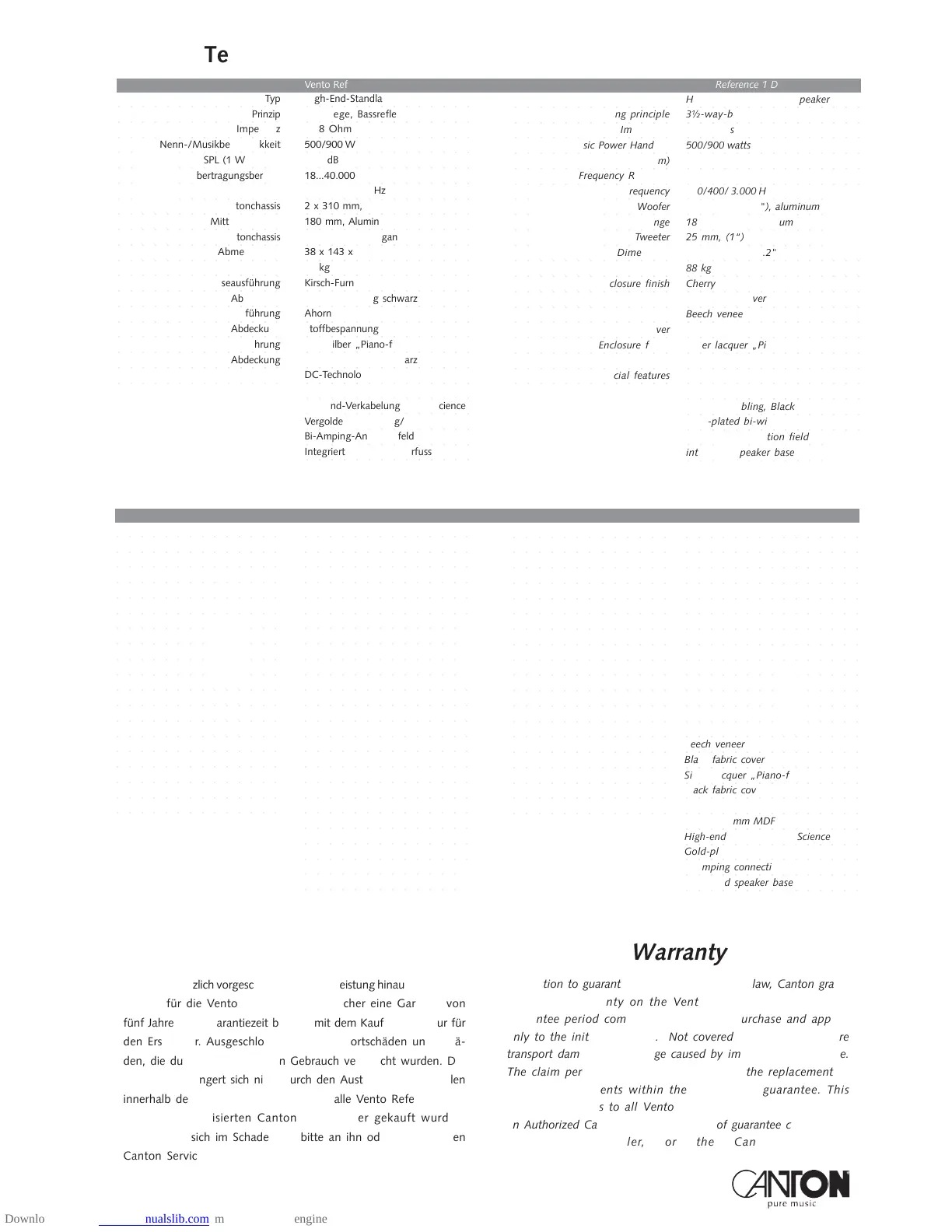 Canton für die Vento Reference Lautsprecher eine Garantie von