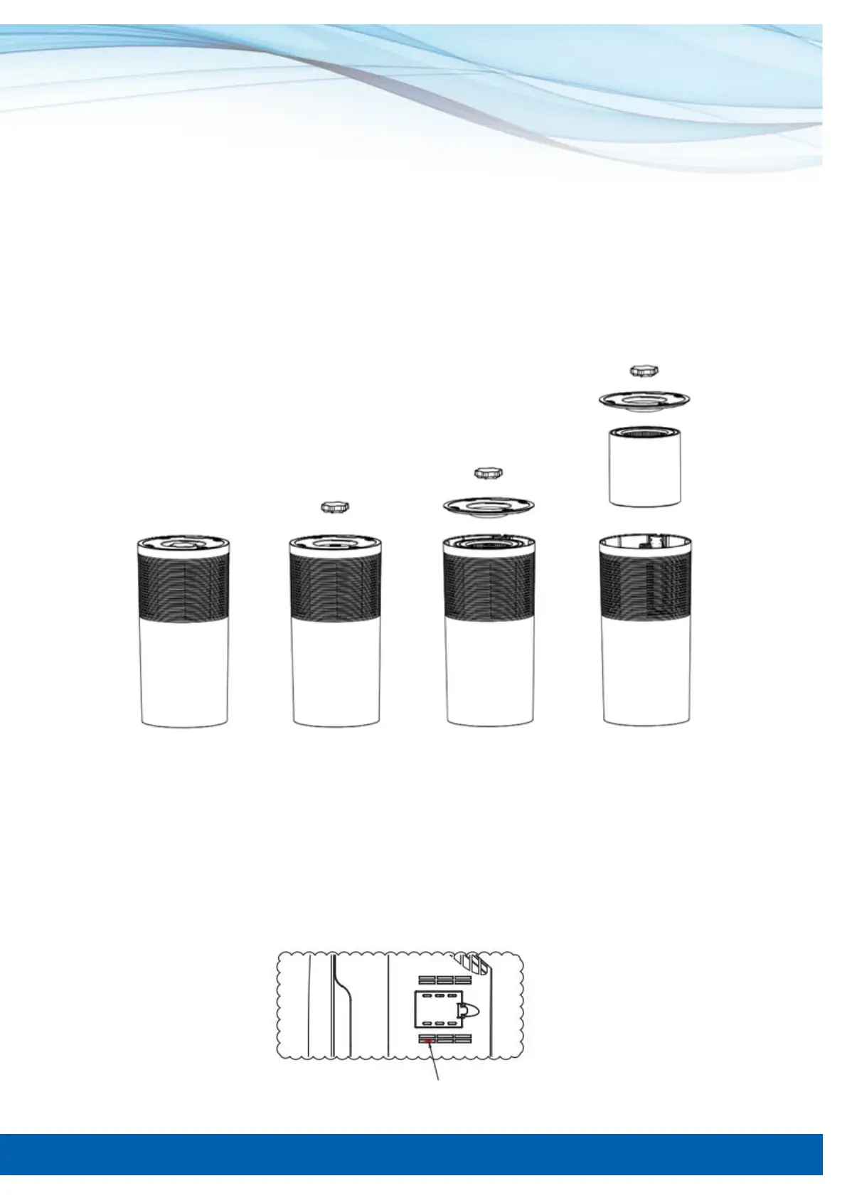 5. Kun suodatin on vaihdettu, merkkivalo on kuitattava painamalla laitteen sivussa olevaa