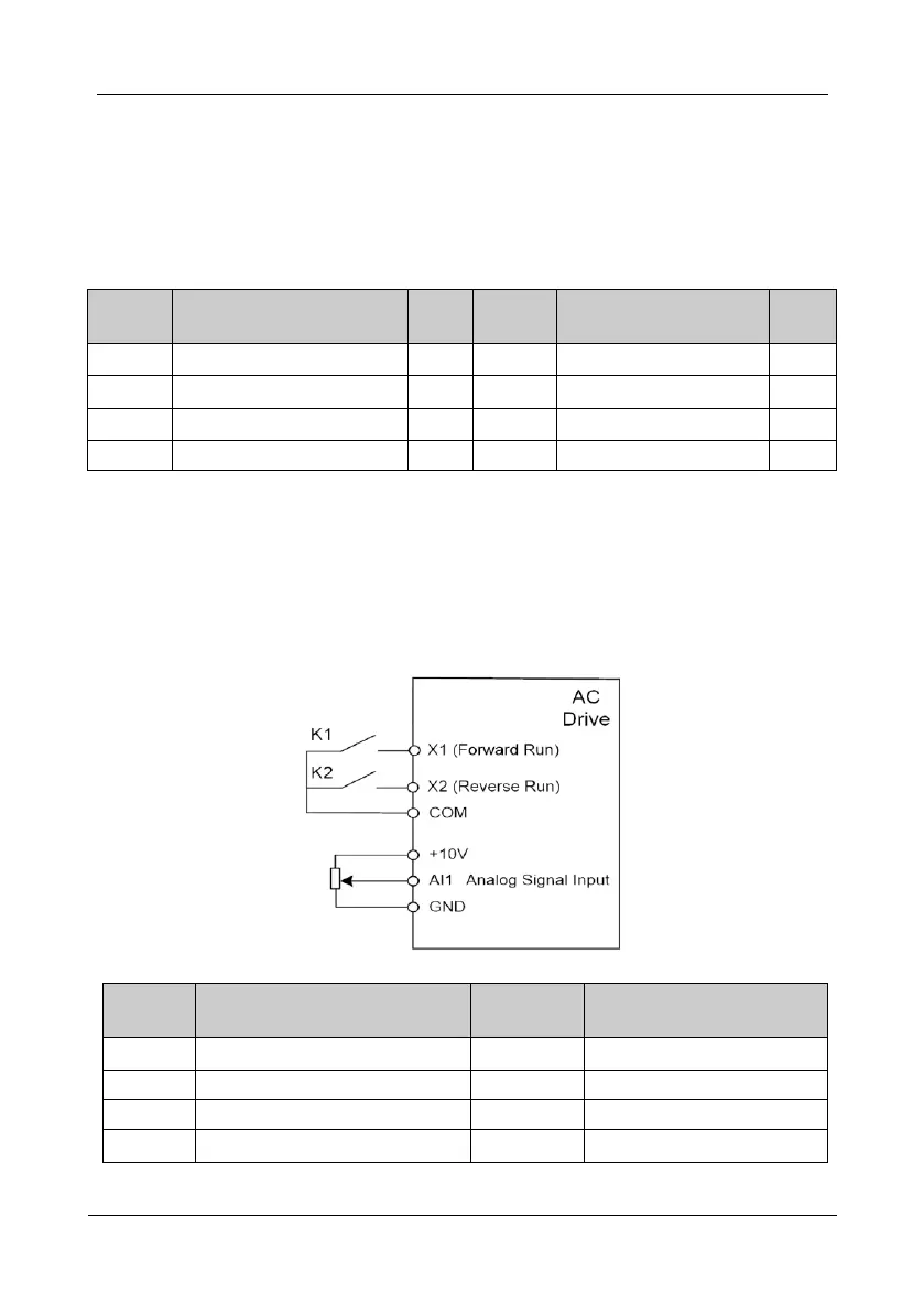 Example 2: Start/stop the AC drive by digital input (X terminals) and set frequency through
