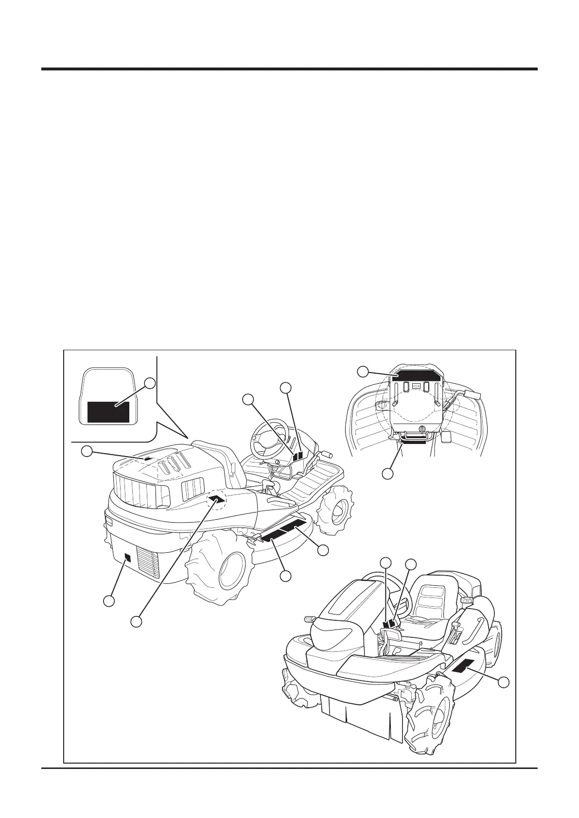 • Keep the labels clean and legible. Do not use solvents or gasoline to clean the labels.