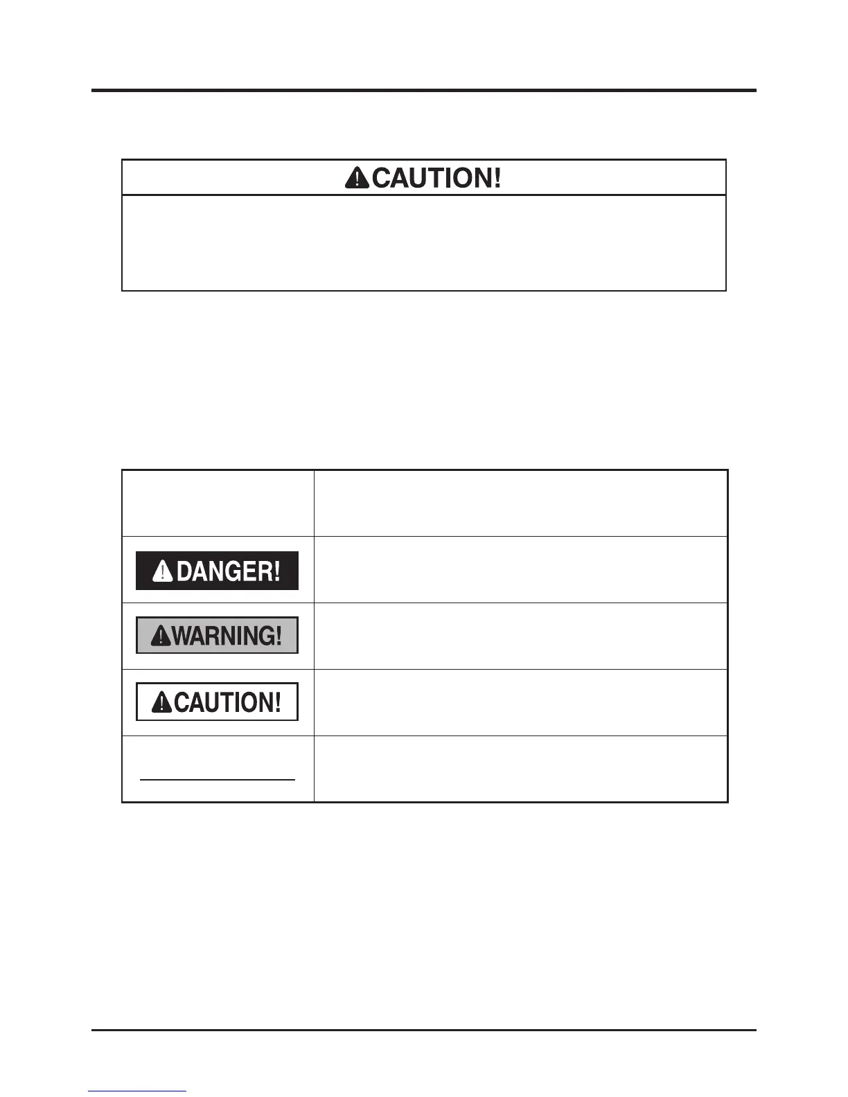 In this manual, the following four warning terms are used to signal the four levels of hazard (or