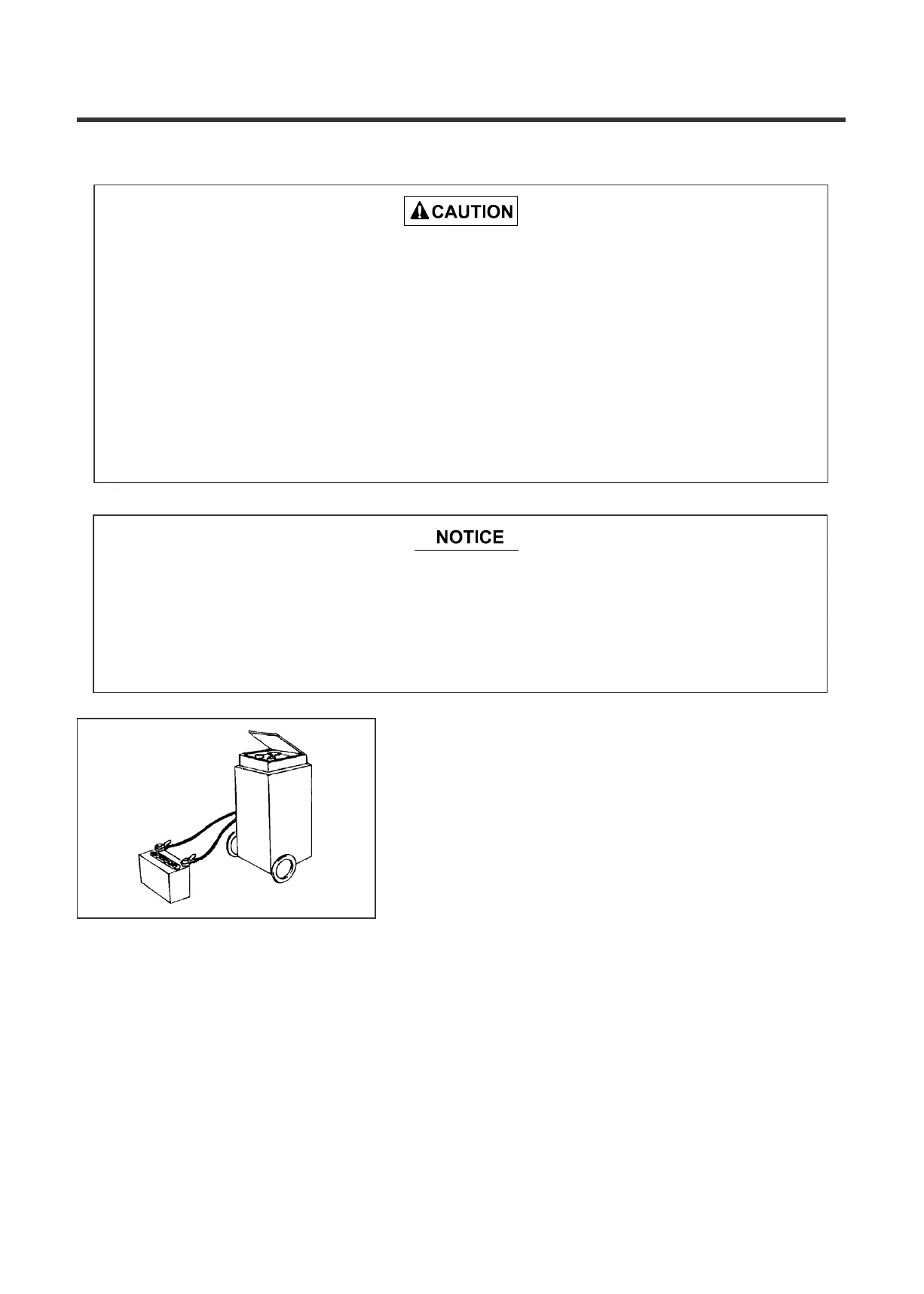 ● When connecting cables to the battery, use the correct (+) and (-) terminals.