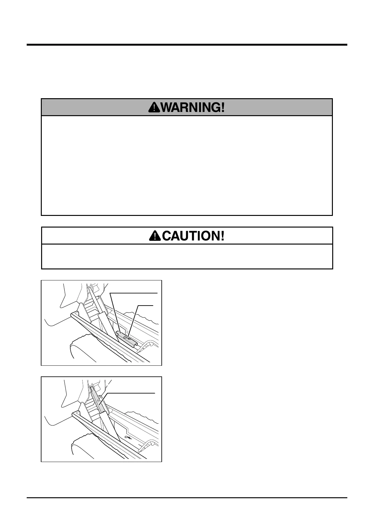 • Hold loading deck in the raised position with safety lock plate when inspecting