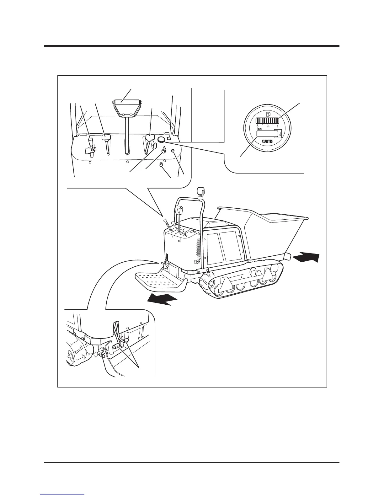 1 Dump Lever . . . . . . . . . . . . Raises or lowers the bucket.
