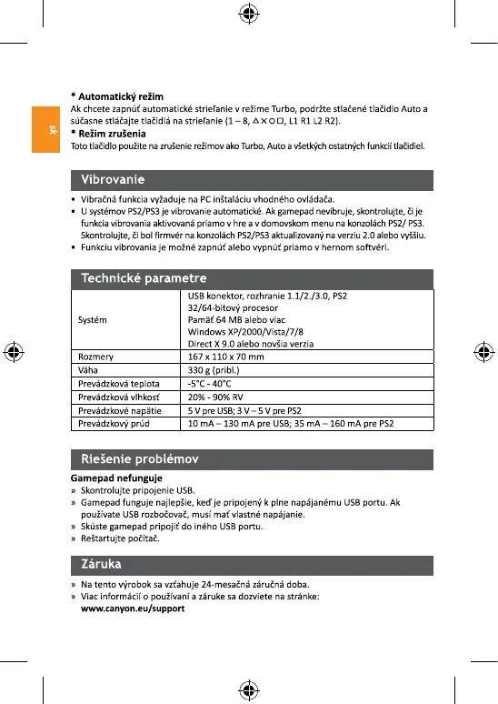 Prevádzkový prúd 10 mA – 130 mA pre USB; 35 mA – 160 mA pre PS2