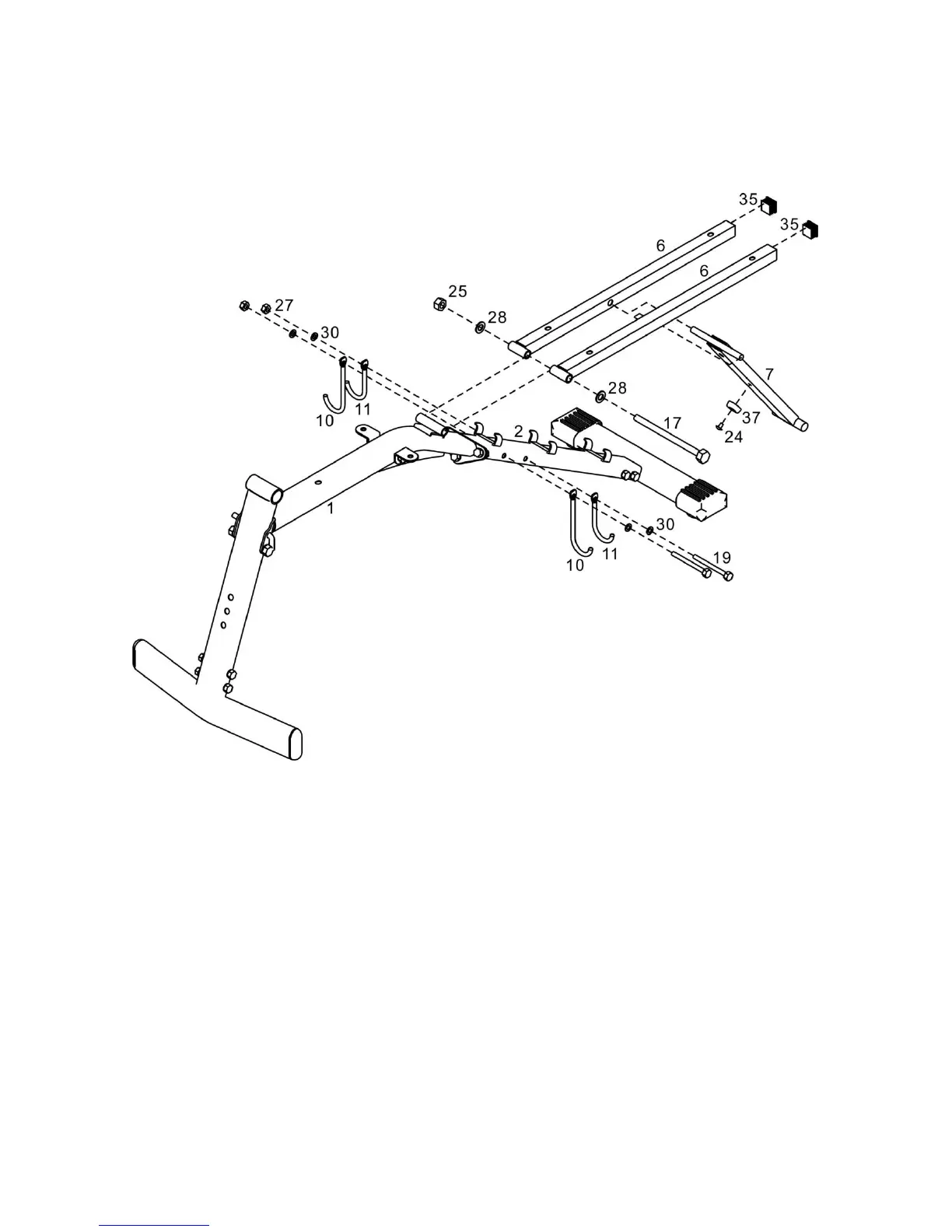 one M6 x 15mm Screw (#24) and Rubber Bumper (#37) into the Incline Support (#7).