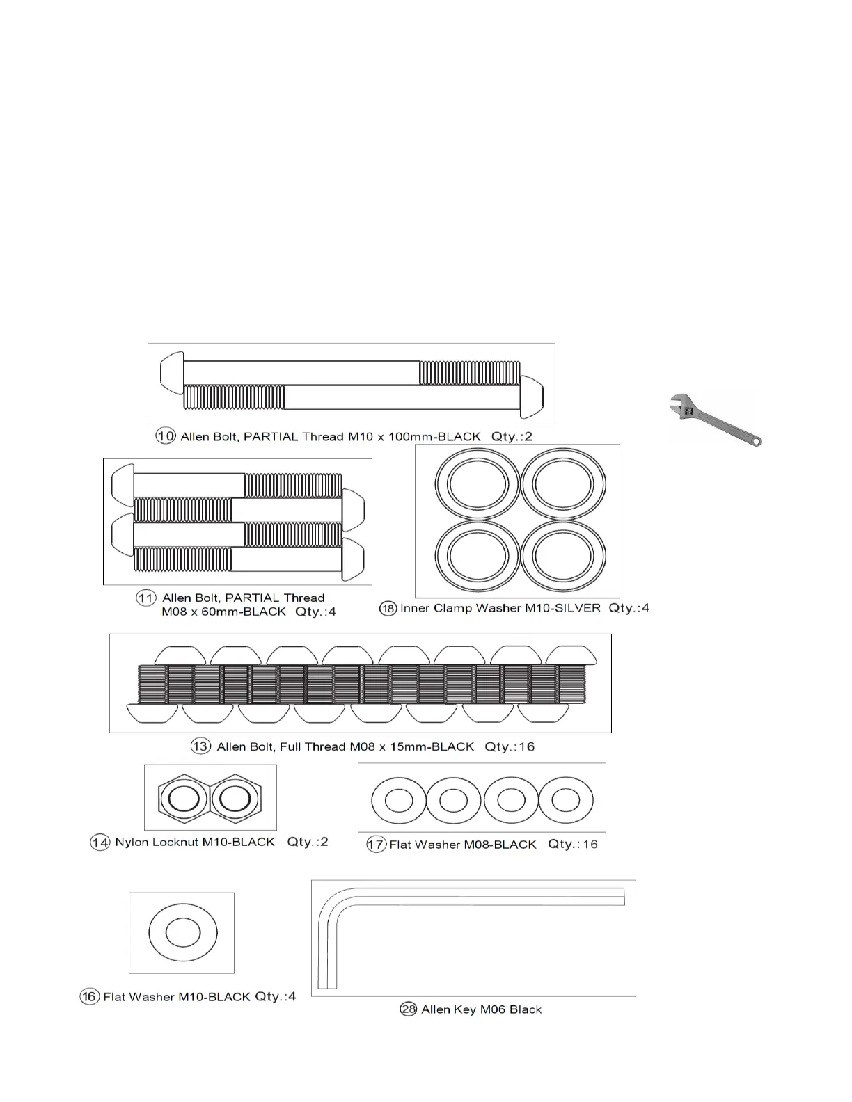 dispose of the packing materials until assembly is completed. See below the hardware that is included with your