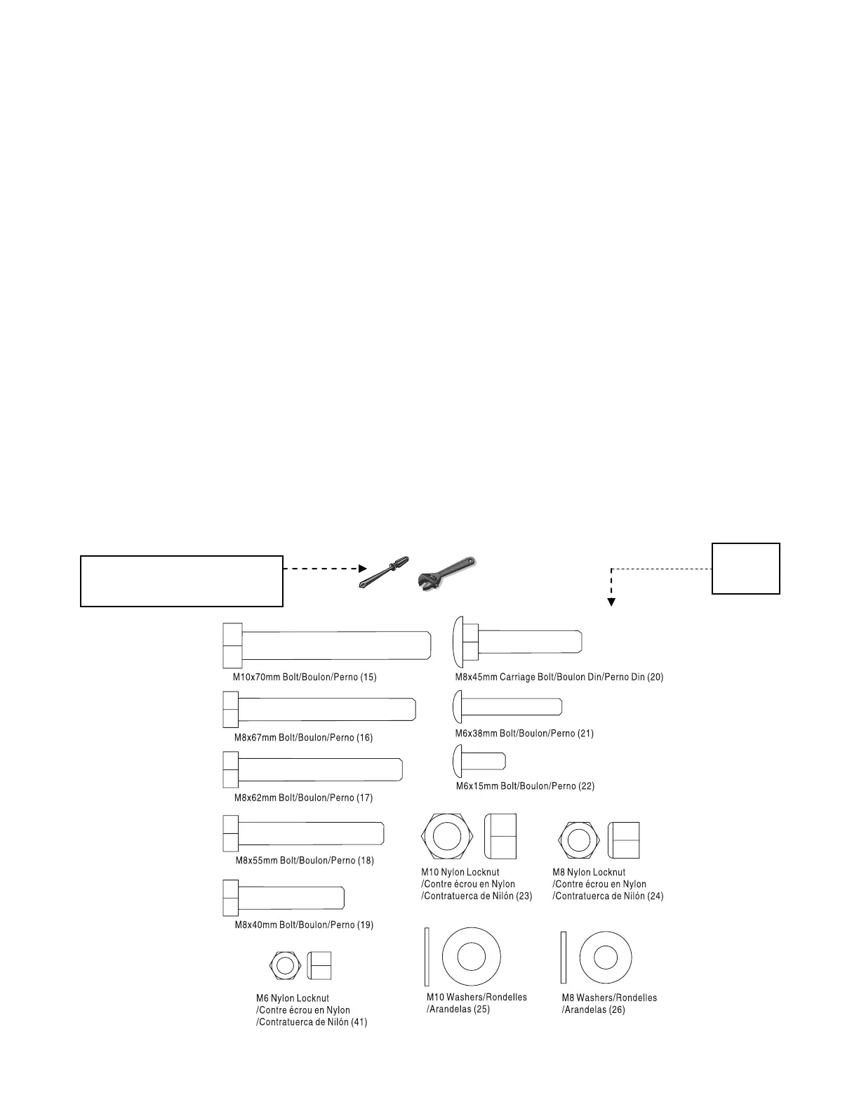 dispose of the packing materials until assembly is completed. See below a list of tools that are included with your