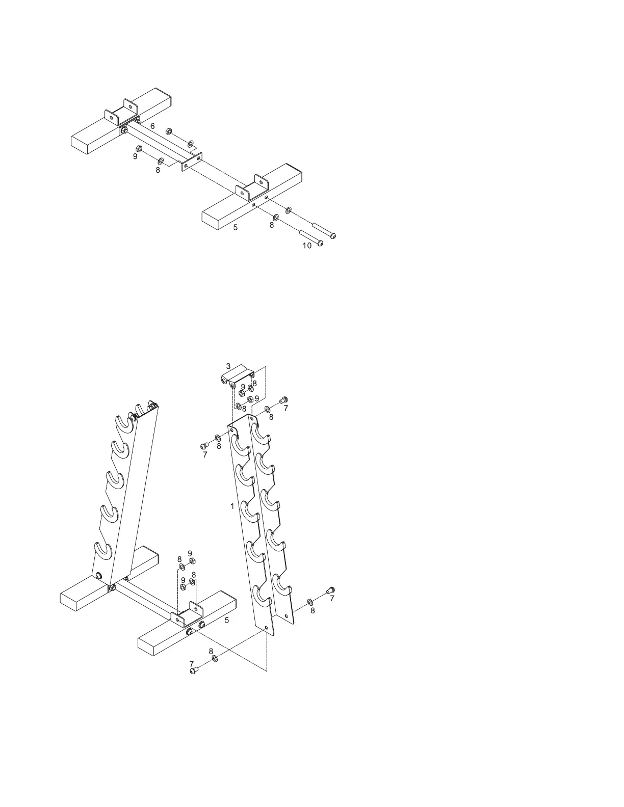 Supports (#5) with two bolts (#7), four washers