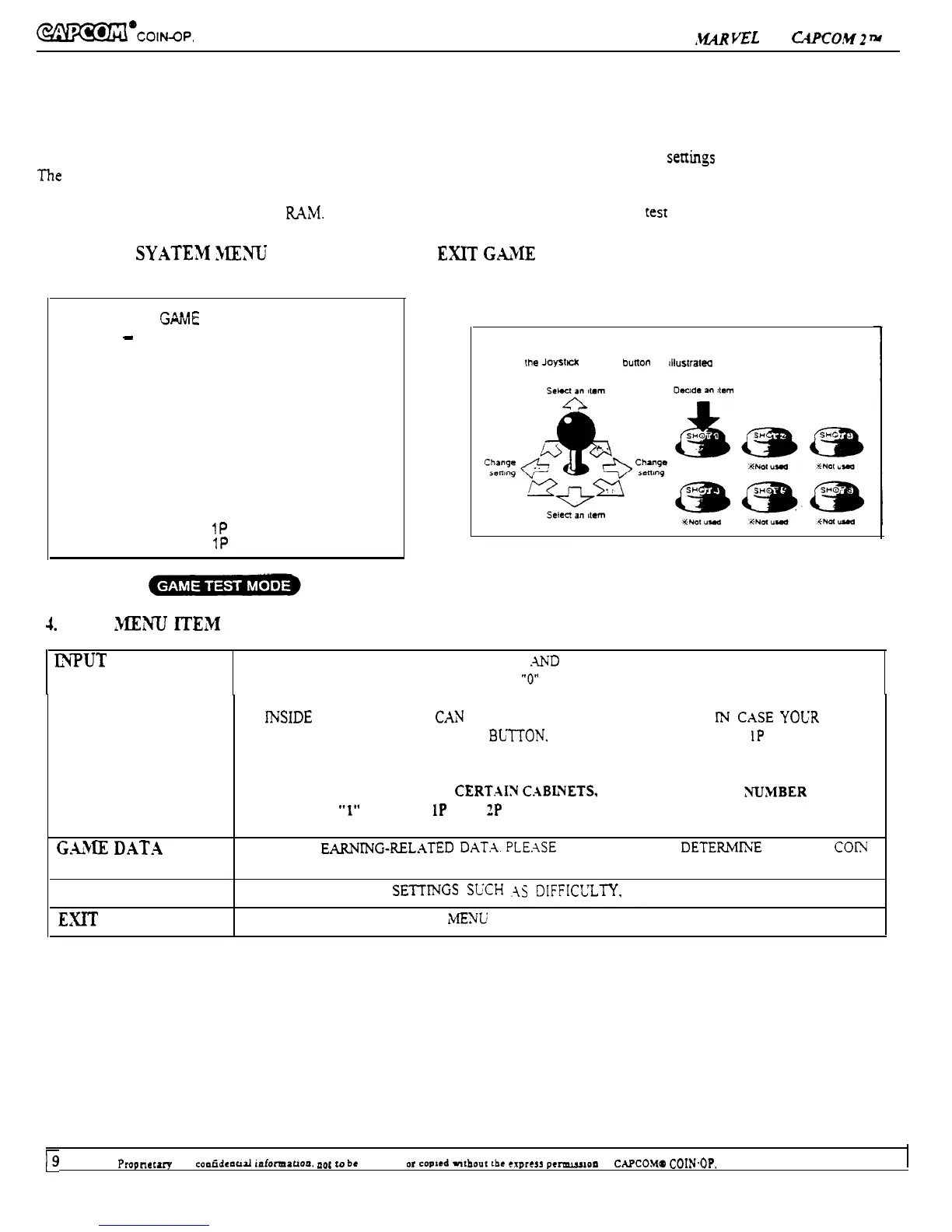 The test menu allows you to test input devices such as joysticks, buttons and coin mechs