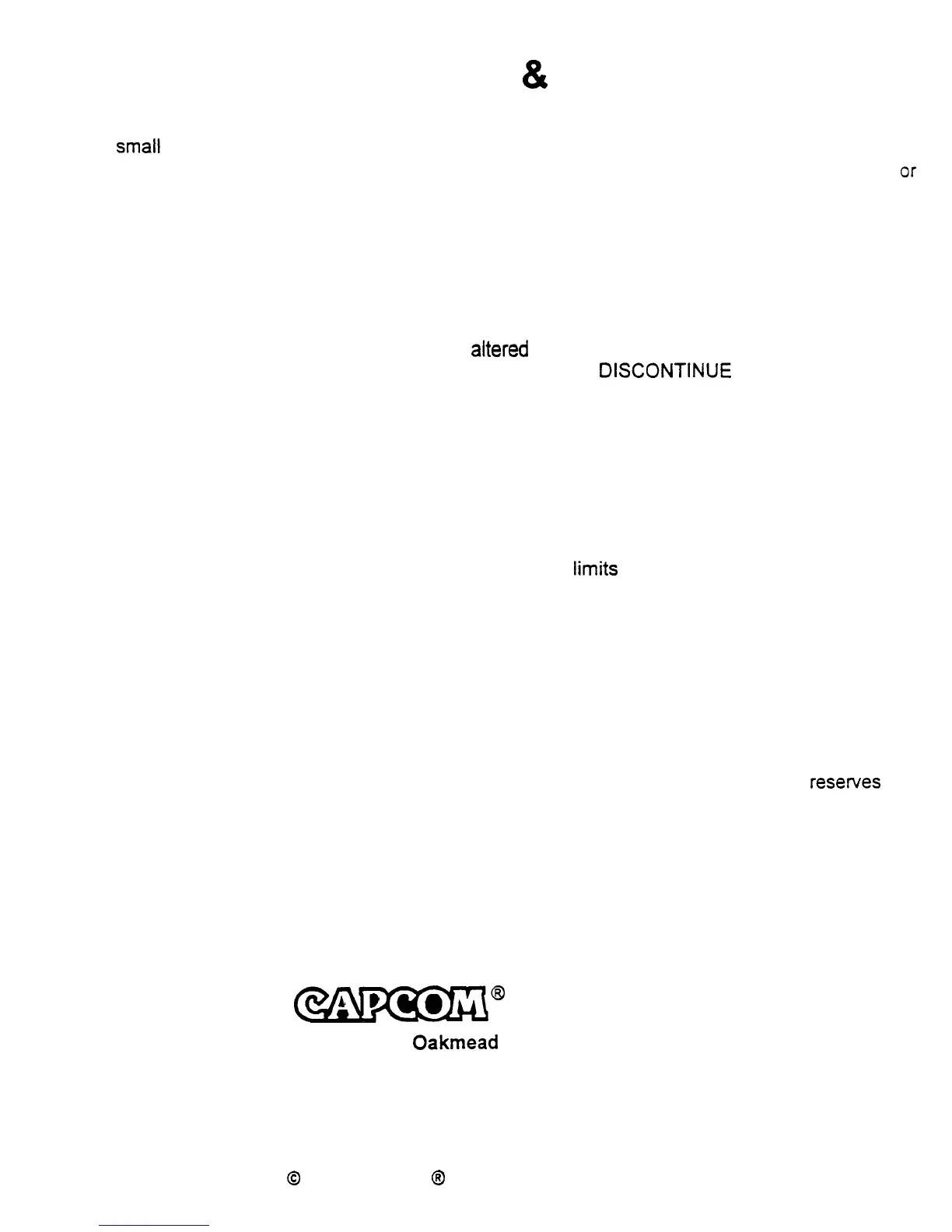 Information in this manual is subject to change without notice. CAPCOM COIN-OP, INC. resewes the