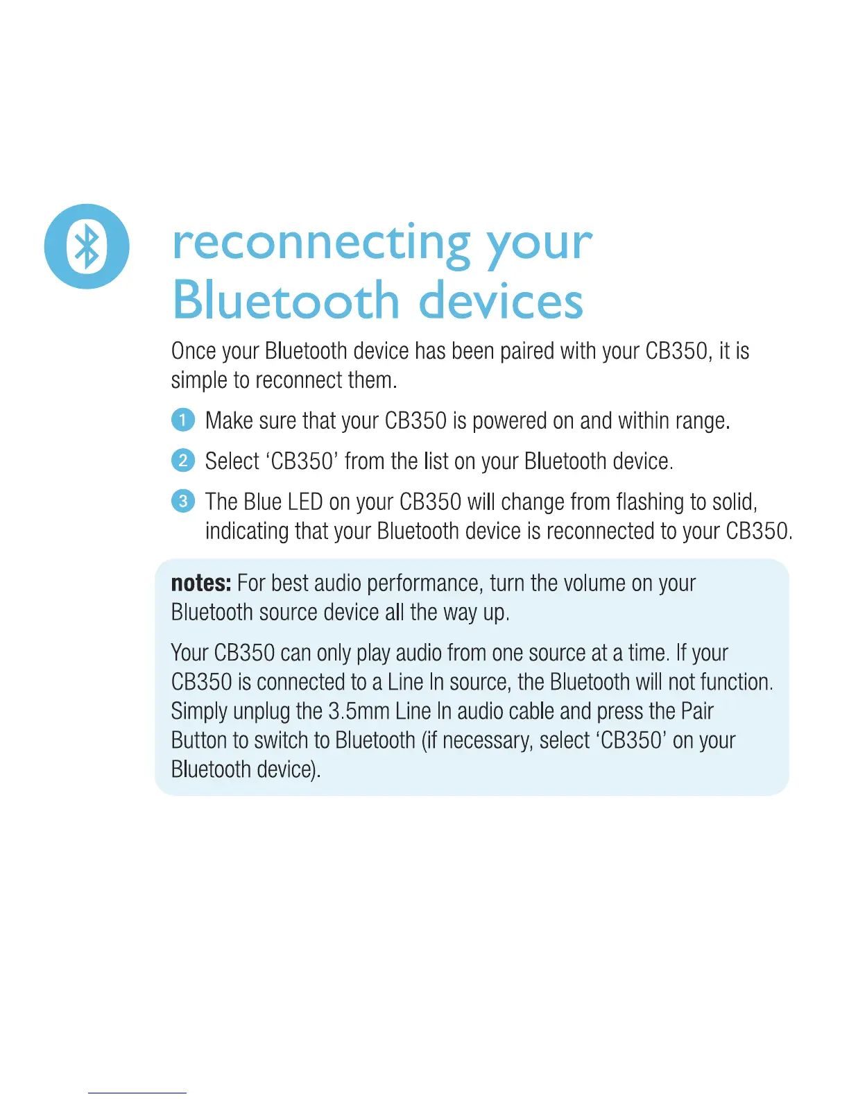 capello CB350 - Reconnecting Bluetooth Devices