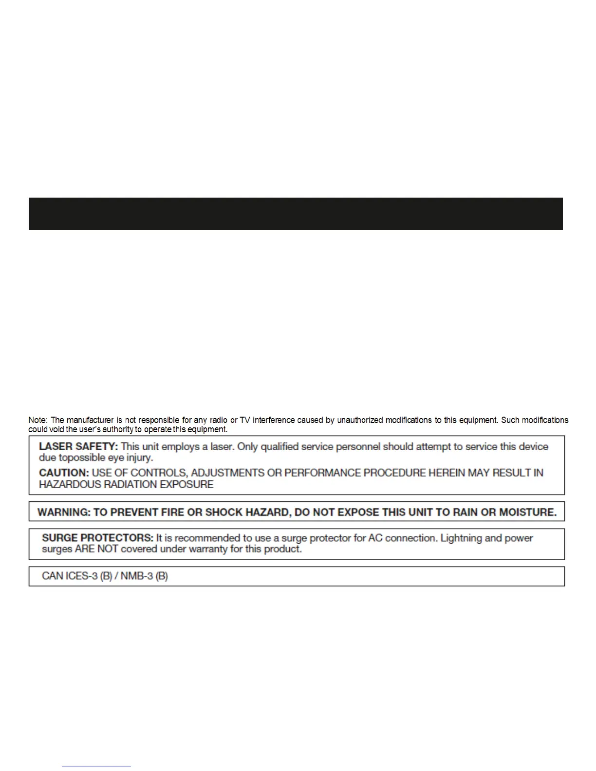 LASER SAFETY: This unit employs a laser. Only qualied service personnel should attempt to service this device