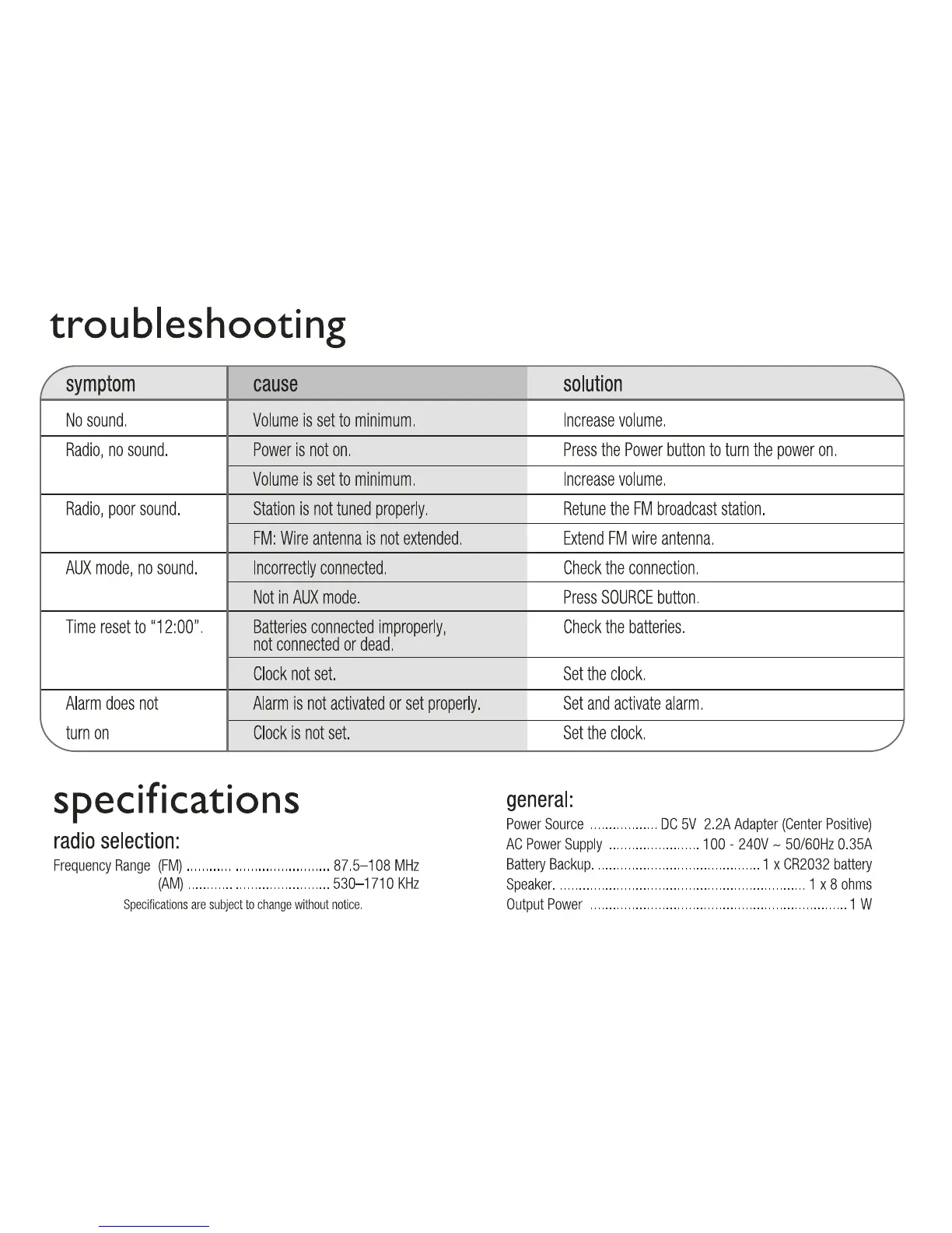 capello CR21 - Troubleshooting and Specifications; Troubleshooting Common Issues