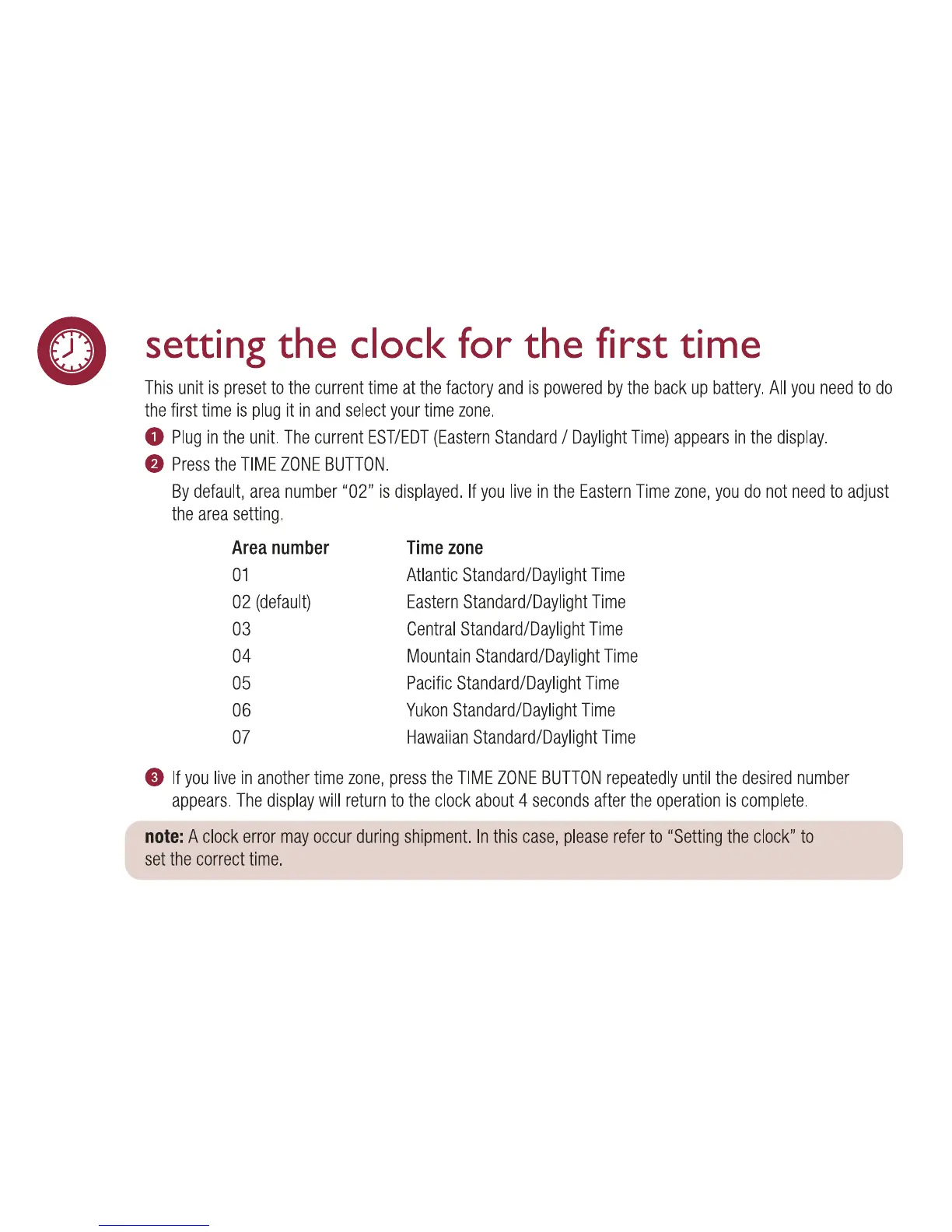 capello CR21 - Clock and Time Settings; Initial Time Zone Setup