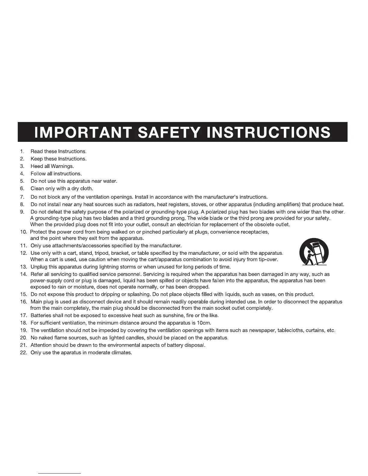capello CR25 - Important Safety Instructions; General Safety Guidelines; Plug, Cord, and Servicing Safety; Environmental and Usage Precautions