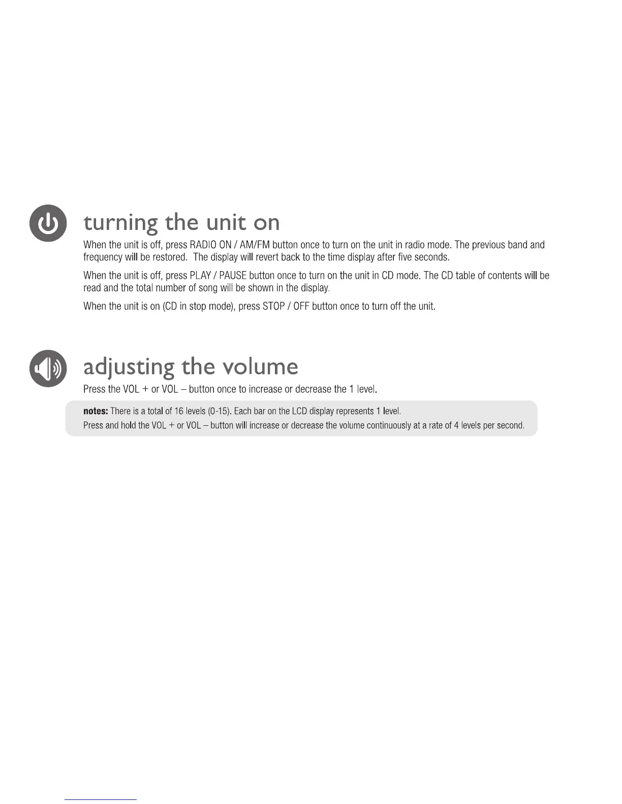 capello CR25 - Basic Operations; Turning the Unit On and Off; Adjusting the Volume Level