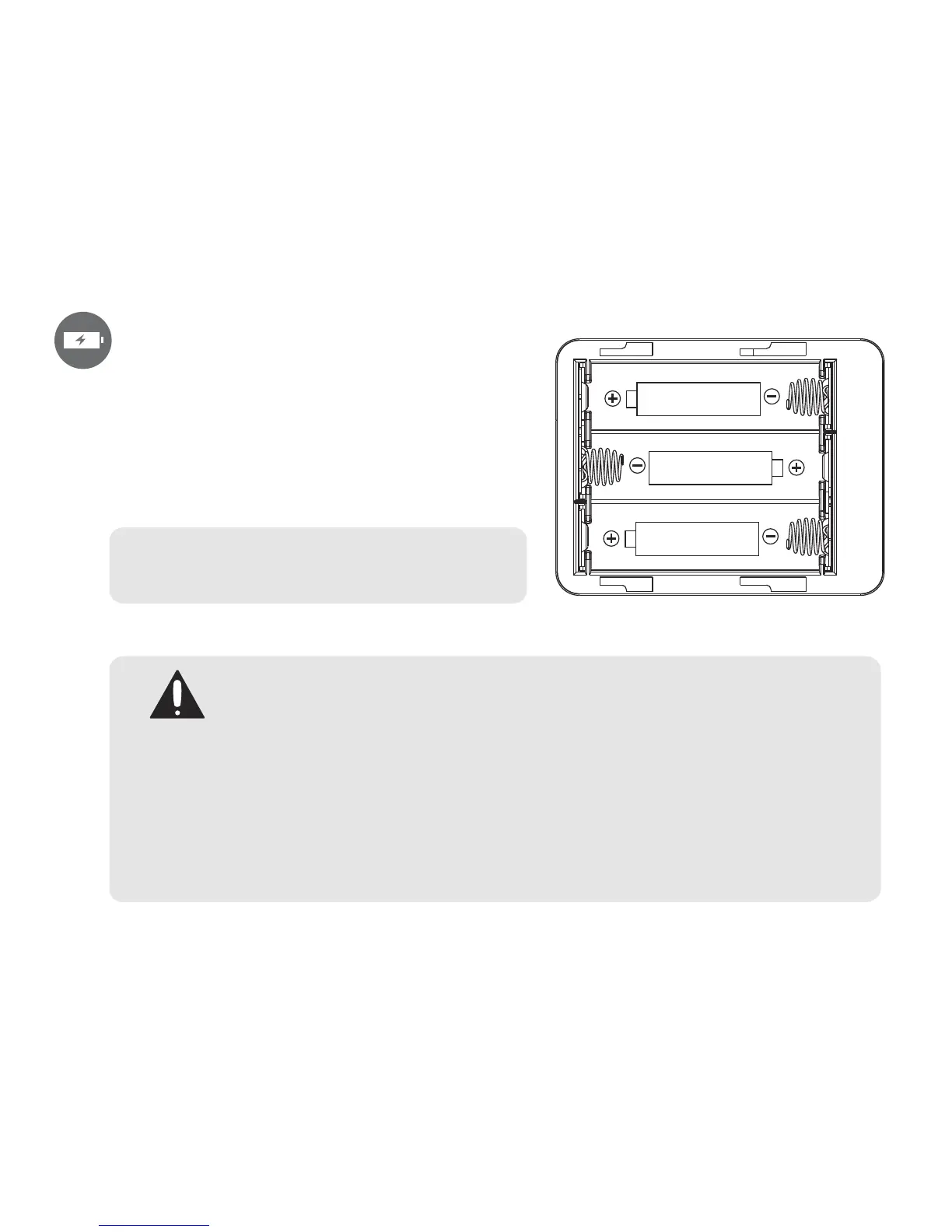 Insert three (3) ‘A A’ batteries as shown. Alkaline batteries are