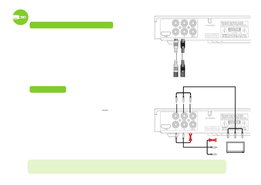 note: Both video and audio connections must be made from the DVD player to the television.