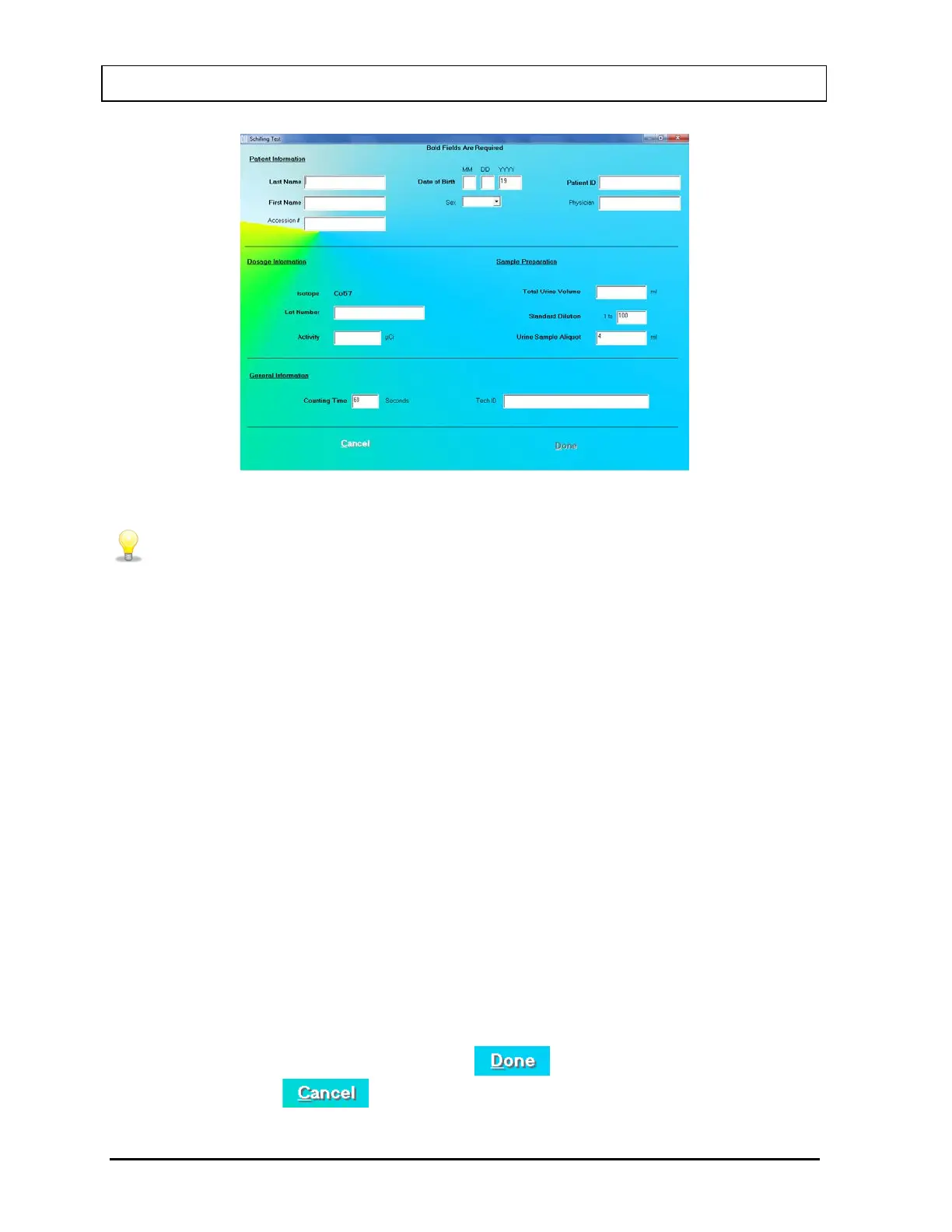 Note: If Cap-DICOM software is not installed, the Accession # field will not be present.