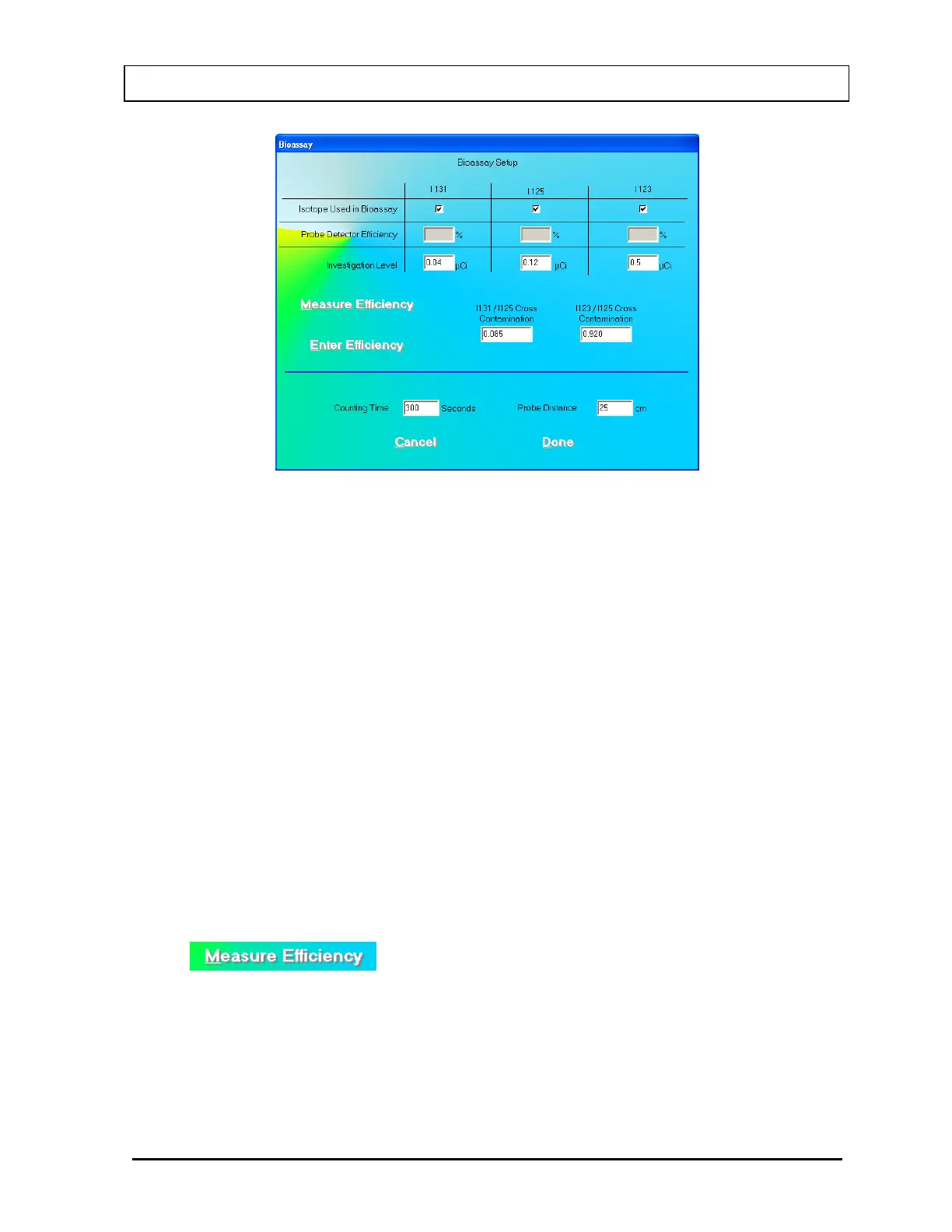 a. To measure the efficiency of any one or all of the isotopes, click the