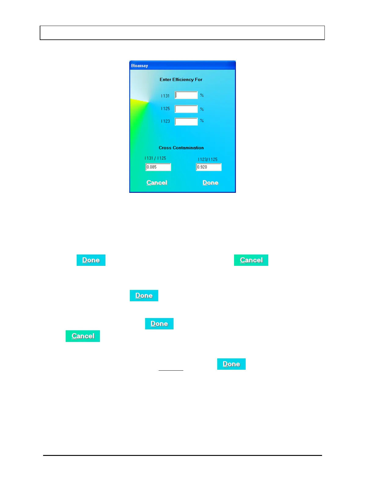 iii. To input the I 131/ I 125 or I 123/I 125 Cross Contamination ratios, click in the
