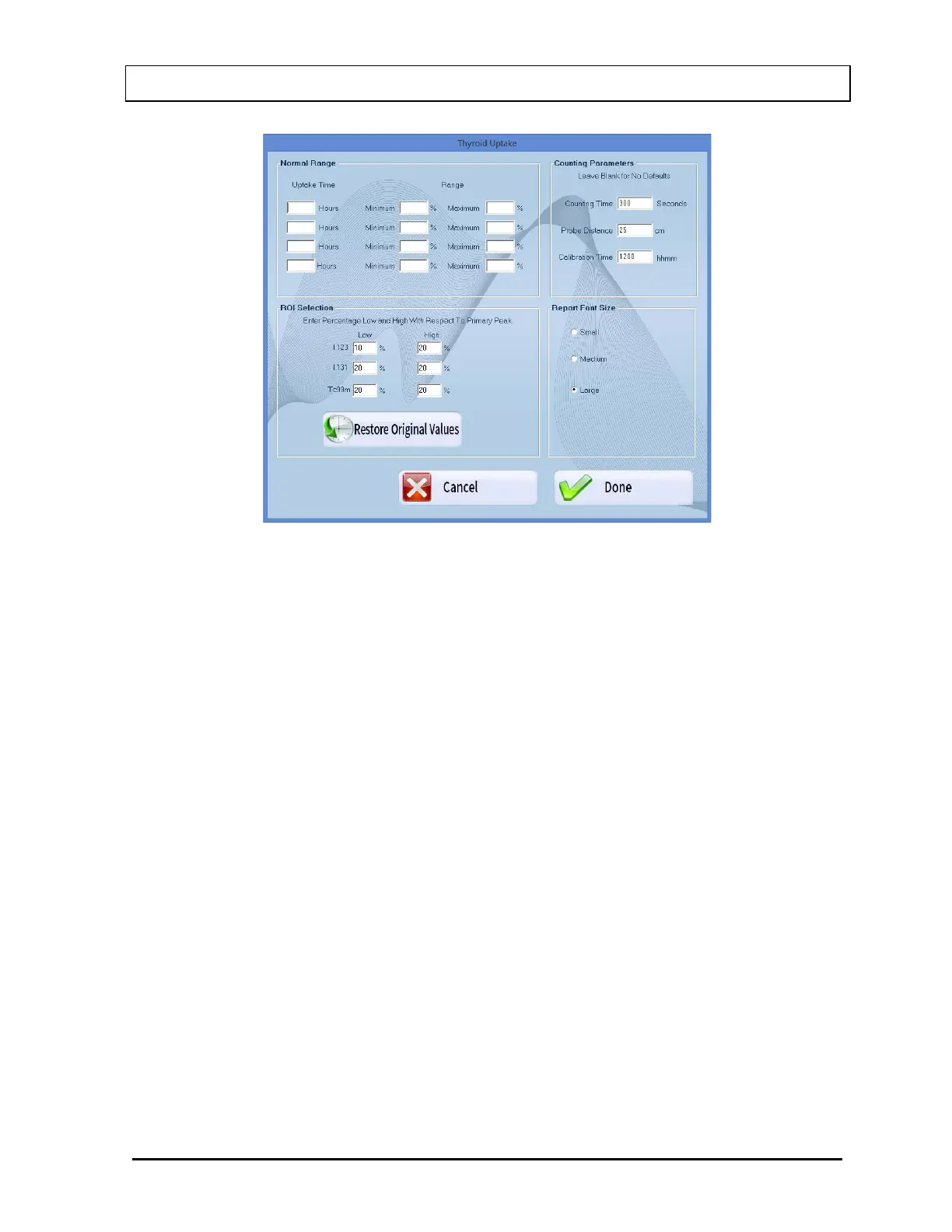 Thyroid Uptake Report. Note that this setting only adjusts the font size of the printed