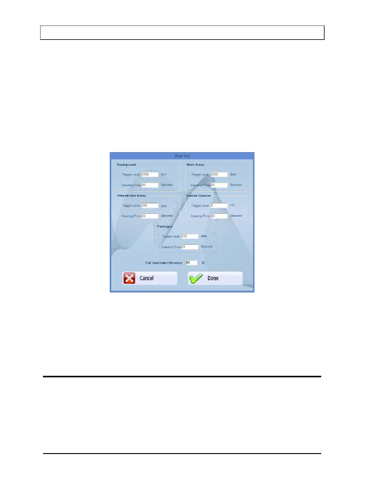 Main Screen. Figure 8-3 Wipe Test Setup Screen will appear.