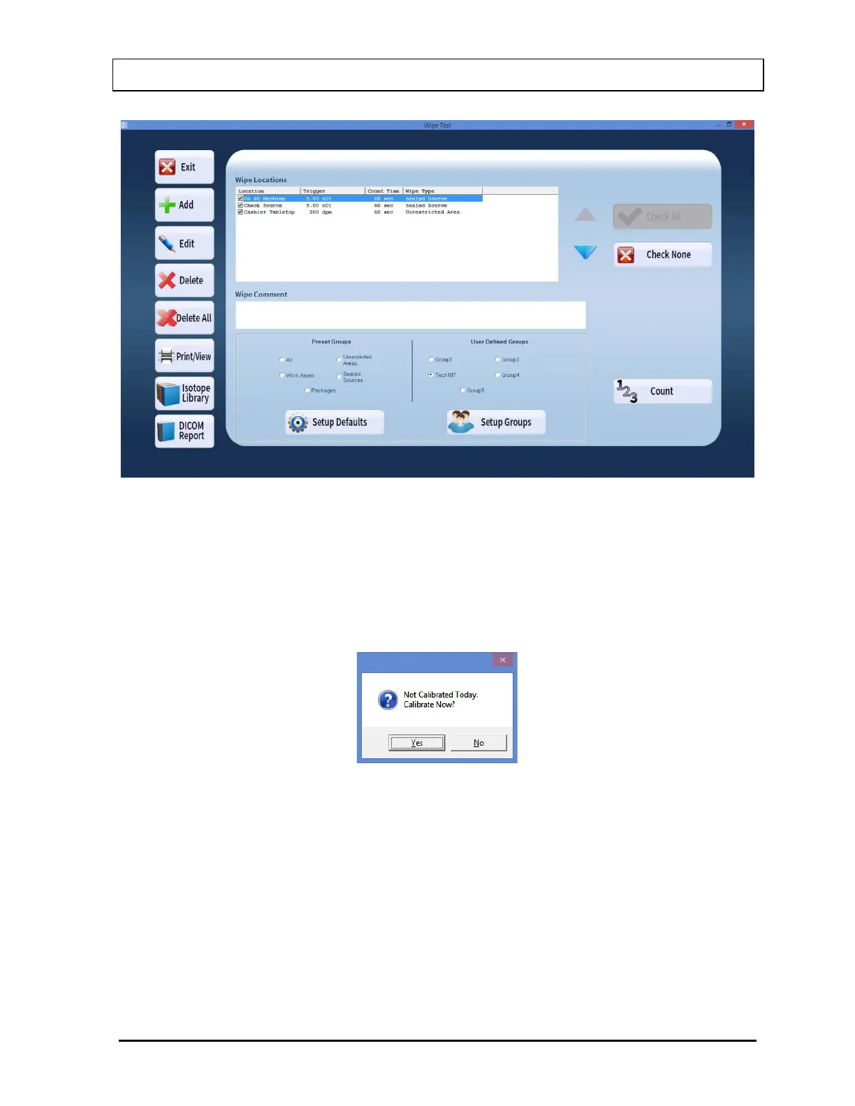 complete, the program will return to Figure 8-15 Wipe Test Measurement Screen.
