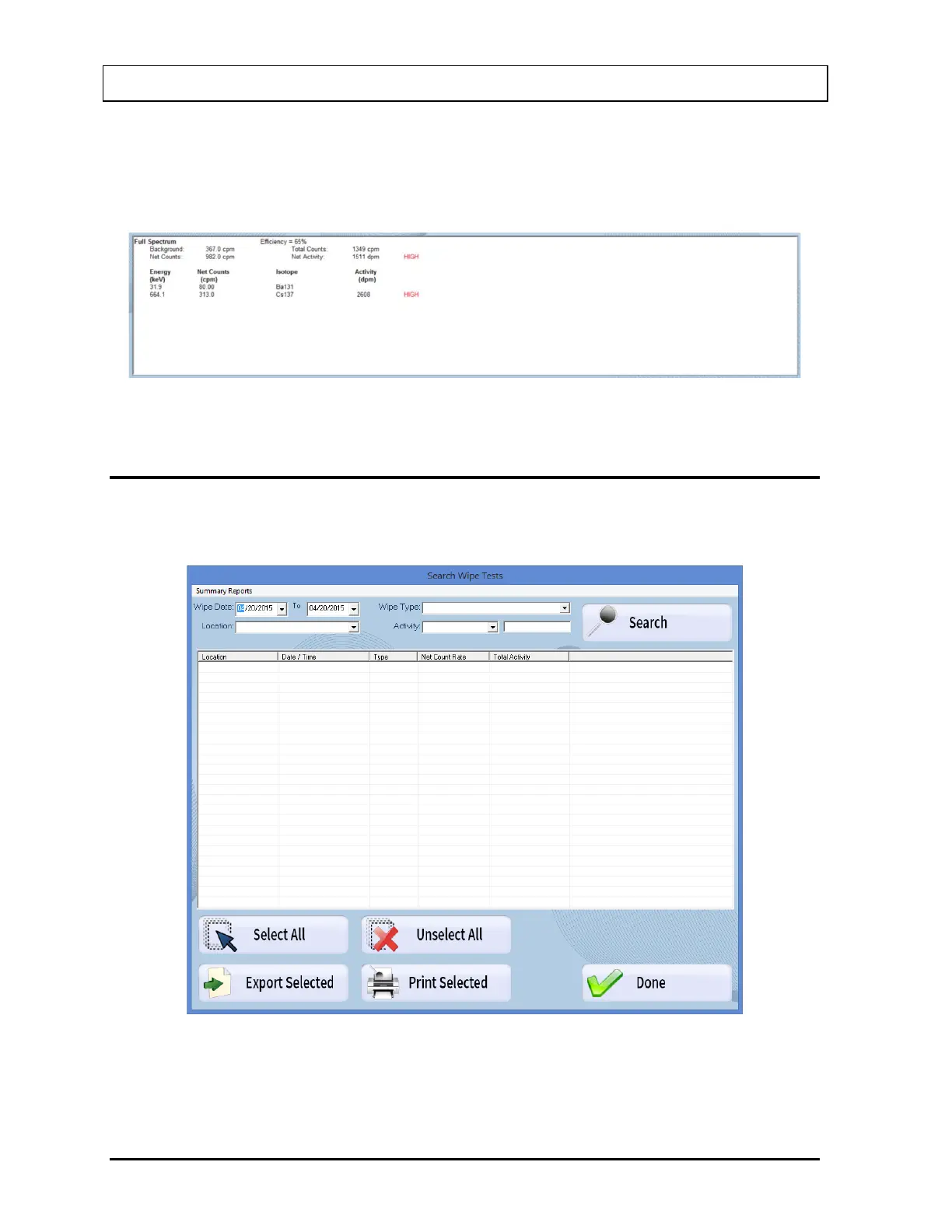 Select the Print/View button on Figure 8-13 Wipe Test Main Screen. Figure 8-23 Wipe Test