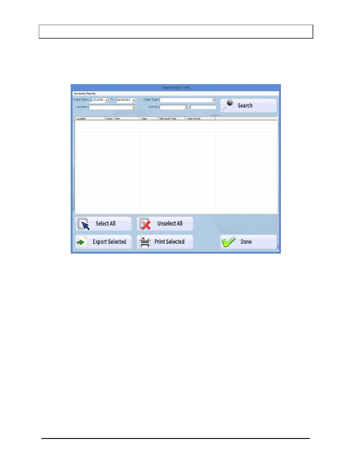 Figure 8-33 Wipe Test Summary Reports Window will appear.