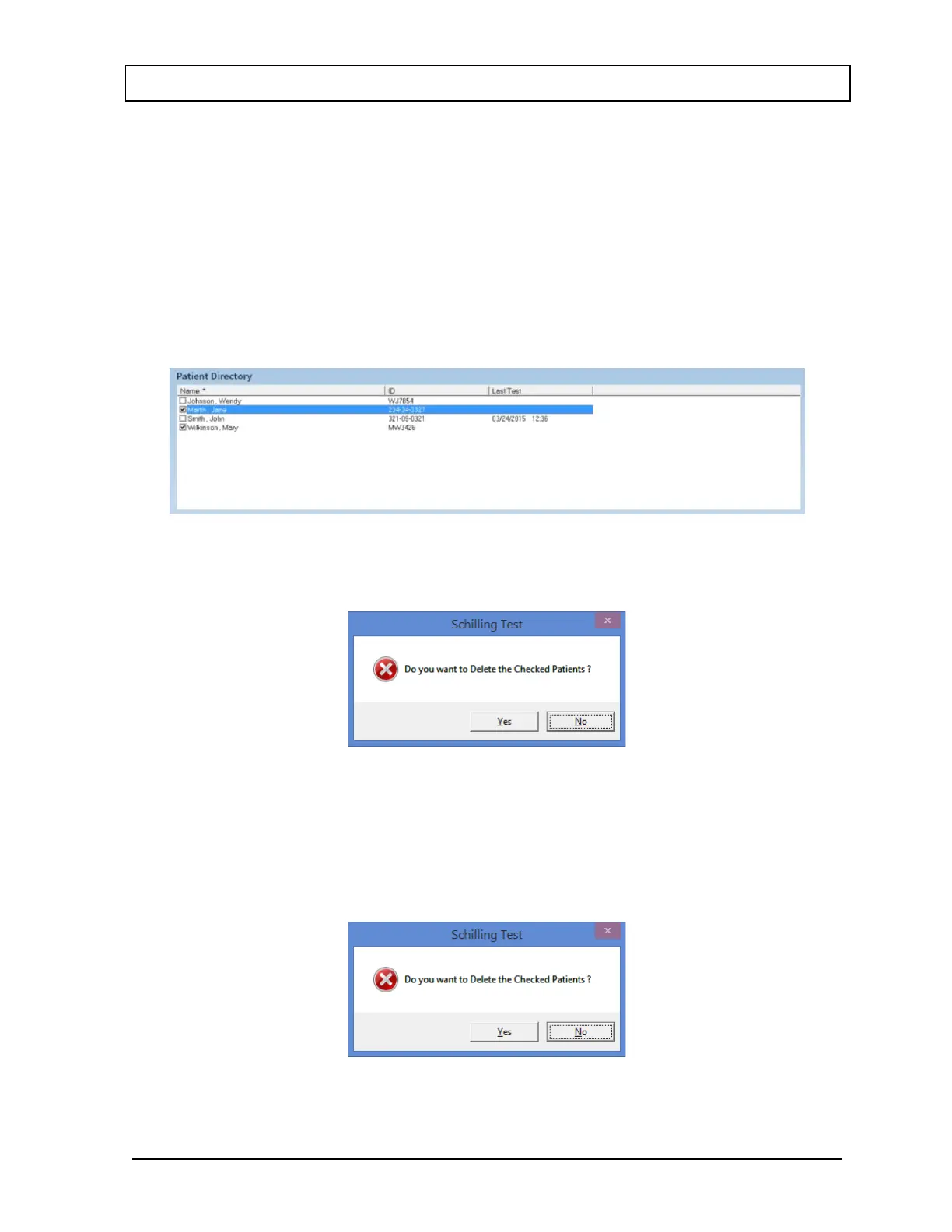 name in the Patient Directory box on the Main Schilling Test Screen (Figure 10-8). A