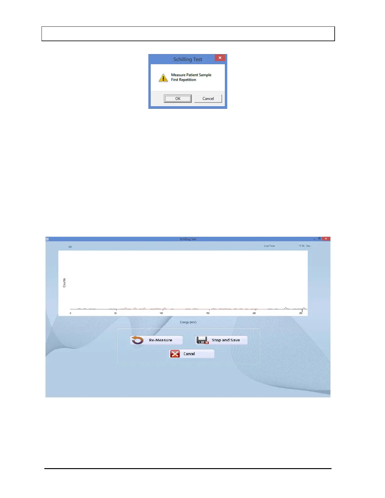 return to Figure 10-2 Schilling Test Main Screen. The Patient Status box will show the