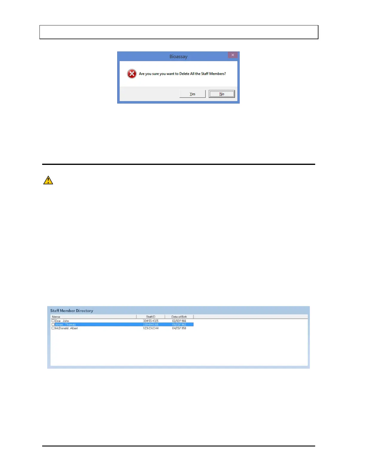 Staff Member Directory box in the Main Bioassay screen using the and keys on the