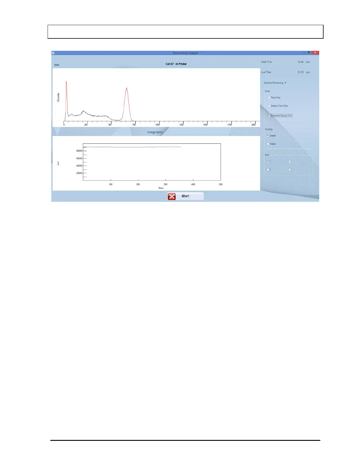 • Graph – The data counts collected are displayed as a function of real time. The solid